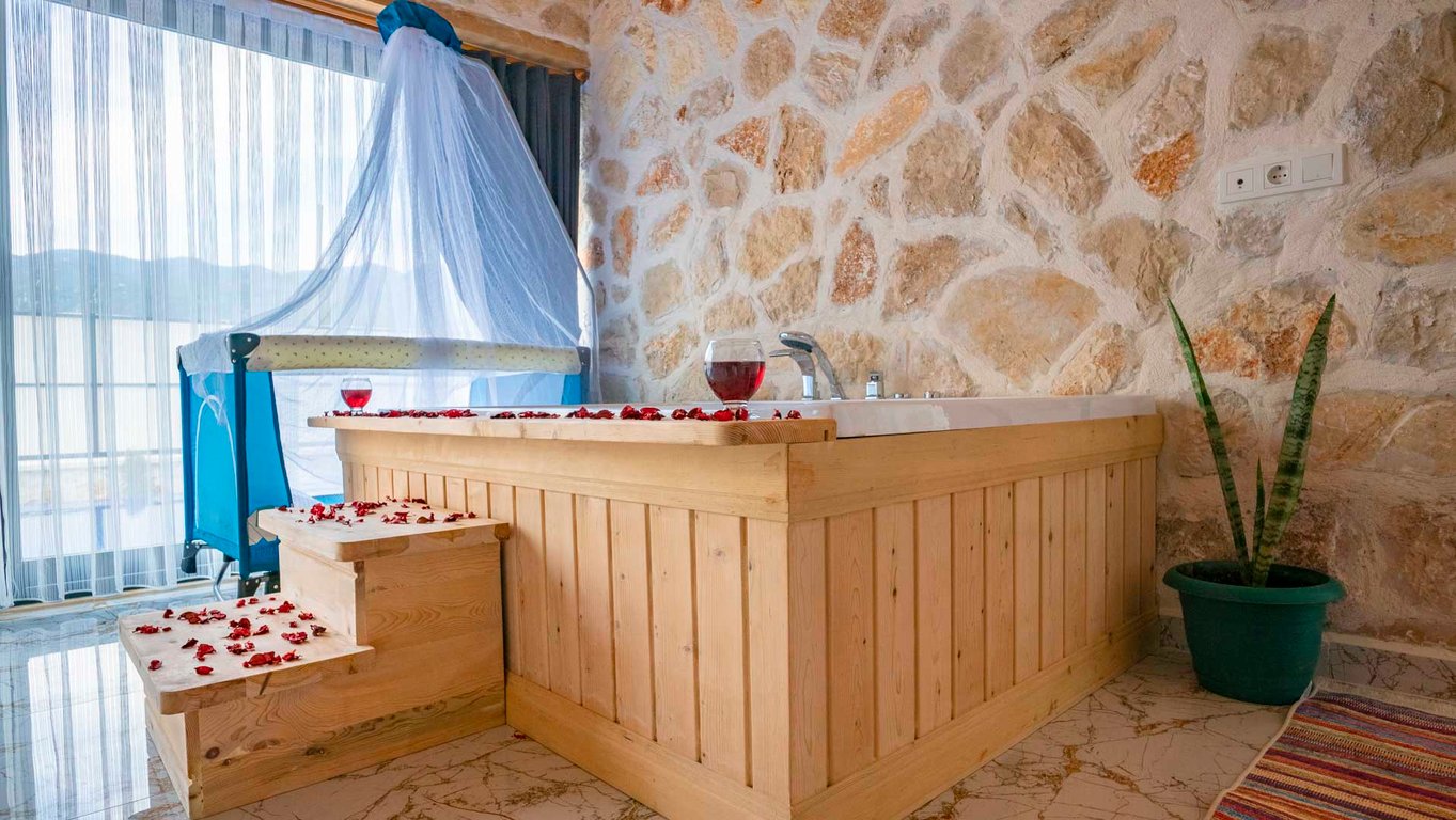 1- Çift kişilik yatak, banyo/WC, jakuzi ve bebek yatağı bulunmaktadır