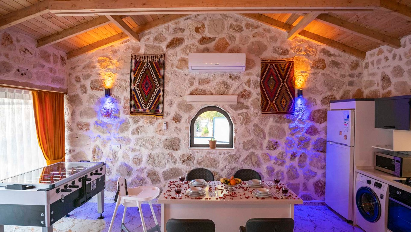 Villa Anka 2, Kalkan Sarıbelen bölgesinde, yeşilliklerle kaplı doğa manzarasına hâkim kiralık villalarımız arasında yer almaktadır. Lüks ve modern bir şekilde dizayn edilen villamızda 2 adet yatak odası bulunmakta olup, 4 kişiye konaklama imkanı sağlamaktadır. Yatak odalarından birinde jakuzi yer almakta olup, tüm yılın vermiş olduğu yorgunluğu atmanıza yardımcı olur. Havuz ve havuz terası korunaklı hale getirilen yazlık villamız, muhafazakar aileler tarafından gönül rahatlığıyla tercih edilebilir. Hayallerinizin ötesinde keyif dolu bir tatil için Villa Anka 2’yi tercih edebilirsiniz.