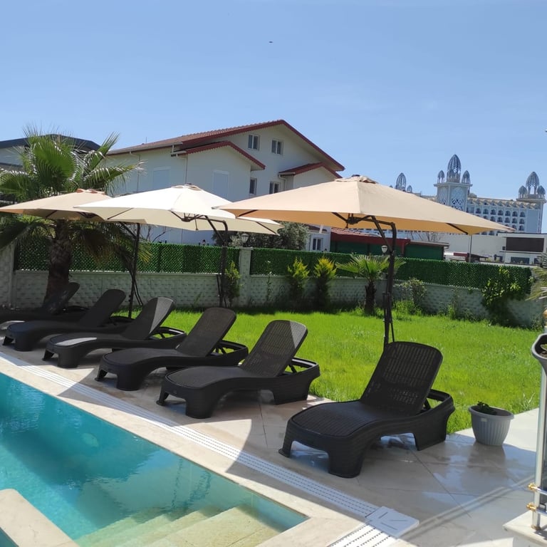 Villa Bahar, Belek bölgesinde konumlanmakta olan, yeşilliklerle kaplı doğa manzarasına hakim kiralık villalarımız arasında yer almaktadır. Lüks ve modern bir şekilde dizayn edilen villamızda 5 adet yatak odası bulunmakta olup, 10 kişiye konaklama imkanı sağlamaktadır. Çocukların rahatça eğlenebileceği çocuk havuzu yer almaktadır. Hayallerinizin de ötesinde keyif dolu bir yazlık villada tatil için Villa Bahar'ı tercih edebilirsiniz.