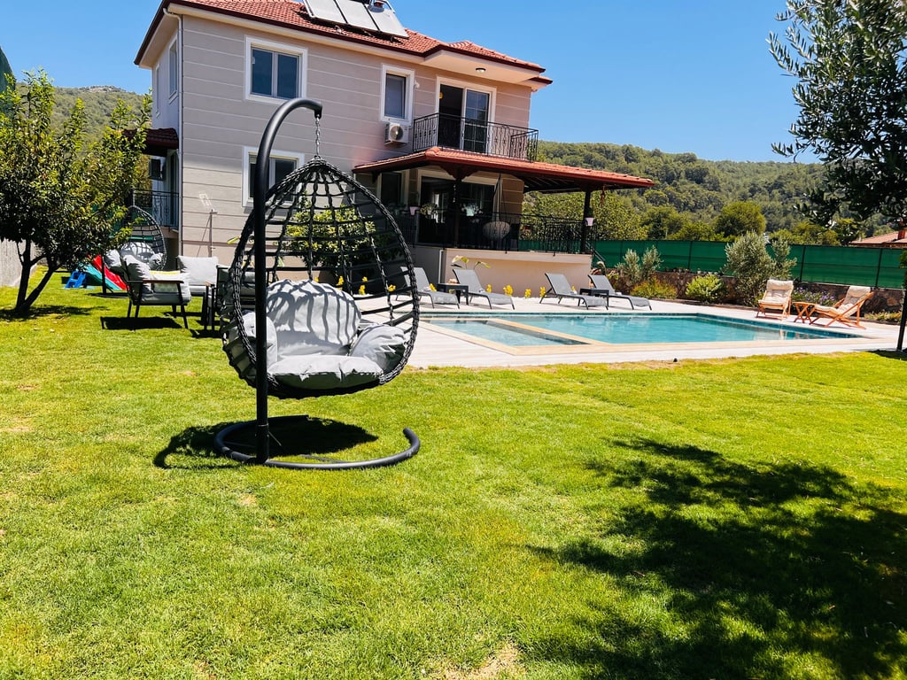 Villa Big House, Fethiye Kayaköy bölgesinde konumlanmakta olup, yeşilliklerle kaplı doğa manzarasına hakim kiralık villalarımız arasında yer almaktadır. Konforlu ve modern bir şekilde tasarlanan villamızda 4 adet yatak odası bulunmakta olup, 8 kişiye kadar konaklama imkânı sunmaktadır. Havuzu ve havuz terası korunaklı hale getirilen villamız, muhafazakâr aileler tarafından gönül rahatlığıyla tercih edilebilir. Hayallerinizin ötesinde keyif dolu bir tatil için Villa Big House’u tercih edebilirsiniz.