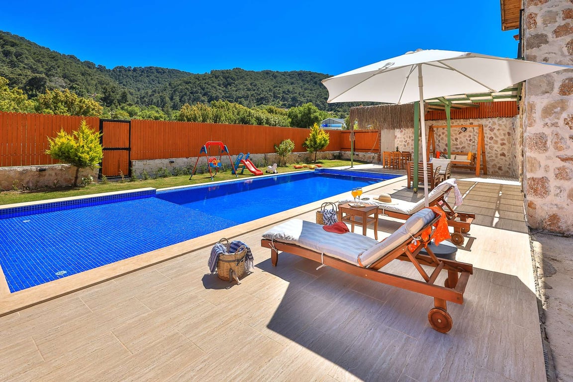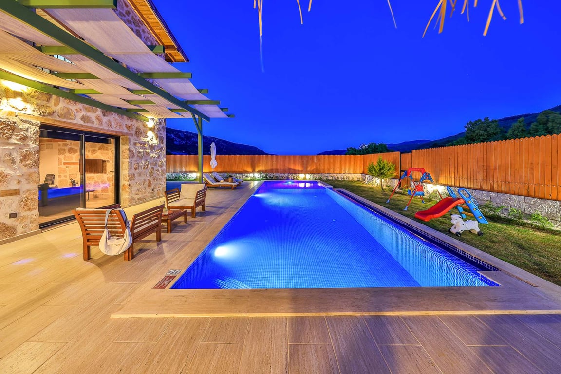 Ebeveyn yatak odasında tüm yılın yorgunluğunu atabileceğiniz jakuzi bulunmaktadır. Havuz ve havuz terası korunaklı hale getirilmiş olup, muhafazakâr aileler tarafından rahatlıkla tercih edilebilir. Hayallerinizin ötesinde keyif dolu bir tatil için Villa Bonus 1’i seçebilirsiniz.
