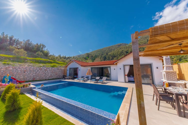 Villa Dessa, Kalkan Hacıoğlan bölgesinde konumlanmakta olan yeşilliklerle kaplı doğa manzarasına hakim kiralık villalarımız arasında yer almaktadır. Lüks ve modern bir şekilde dizayn edilen villamızda 2 adet yatak odası bulunmakta olup, 4 kişiye konaklama imkanı sağlamaktadır. Yatak odalarından bir tanesinin içerisinde tüm yılın vermiş olduğu yorgunluğu giderebileceğiniz jakuzi yer almaktadır. Havuz ve havuz terası korunaklı hale getirilen yazlık villamızı muhafazakar aileler gönül rahatlığı ile tercih edebilirler. Hayallerinizin de ötesinde keyif dolu bir yazlık villada tatil için Villa Dessa'yı tercih edebilirsiniz.