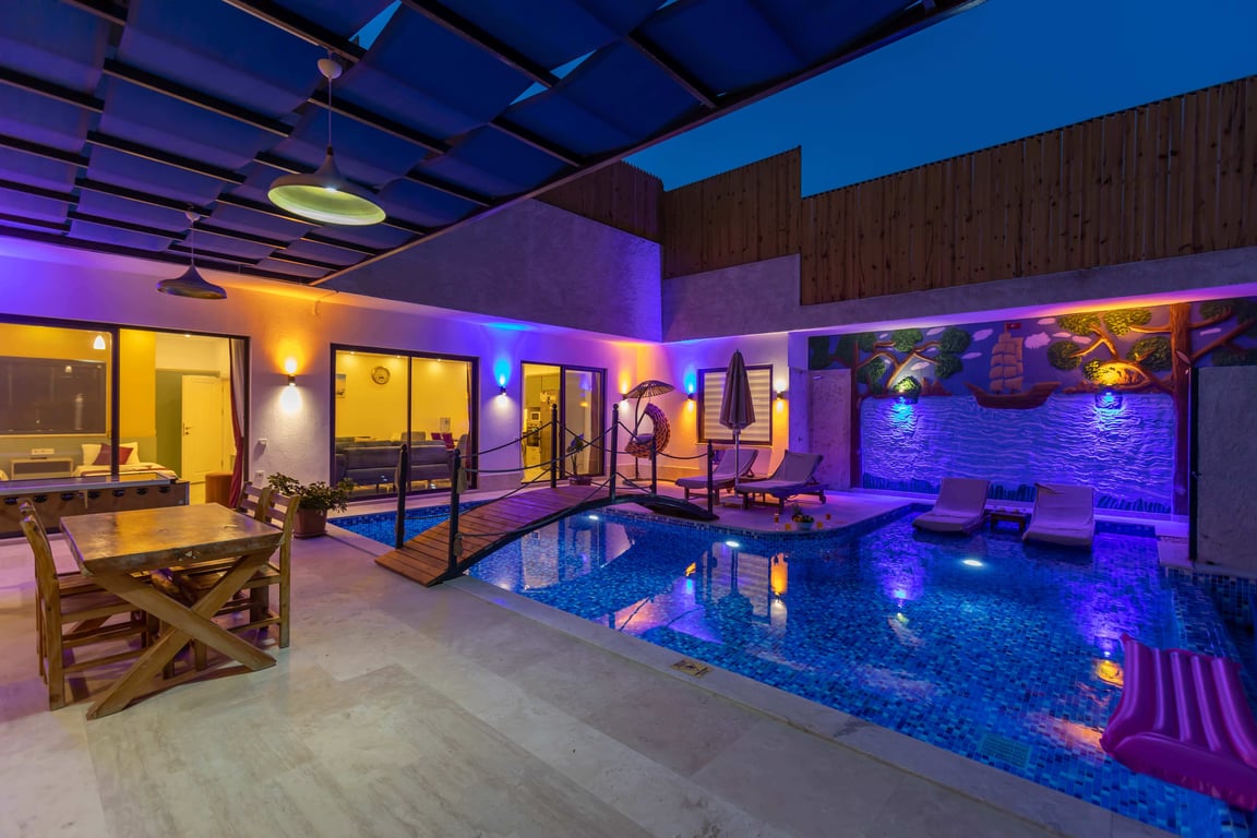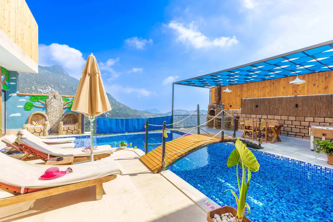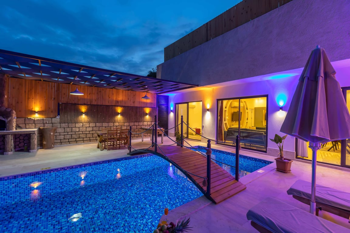 Villa Dimare 2, Kalkan İslamlar bölgesinde konumlanmakta olan yeşilliklerle kaplı doğa manzarasına hakim kiralık villalarımız arasında yer almaktadır. Lüks ve modern bir şekilde dizayn edilen villamızda 2 adet yatak odası bulunmakta olup, 4 kişiye konaklama imkanı sağlamaktadır. Yatak odalarından bir tanesinin içerisinde jakuzi yer almaktadır ve tüm yılın vermiş olduğu yorgunluğu giderebilmeniz için idealdir. Havuz ve havuz terası korunaklı hale getirilen yazlık villamızı muhafazakar aileler gönül rahatlığı ile tercih edebilirler. Hayallerinizin de ötesinde keyif dolu bir yazlık villada tatil için Villa Dimare 2'yi tercih edebilirsiniz.