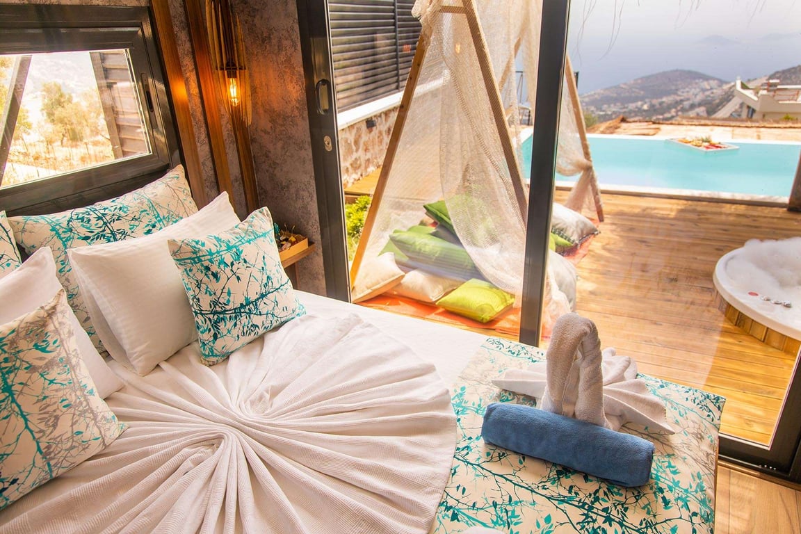 Villa Dream House, Kalkan Akbel bölgesinde konumlanmakta olan muhteşem deniz ve yeşilliklerle kaplı doğa manzarasına hakim kiralık villalarımız arasında yer almaktadır. Lüks ve modern bir şekilde dizayn edilen villamızda 1 adet yatak odası bulunmakta olup, 2 kişiye konaklama imkanı sağlamaktadır. Havuz ve havuz terası korunaklı hale getirilen yazlık villamızı muhafazakar aileler gönül rahatlığı ile tercih edebilirler. Hayallerinizin de ötesinde keyif dolu bir yazlık villada tatil için Villa Dream House’ yi tercih edebilirsiniz.