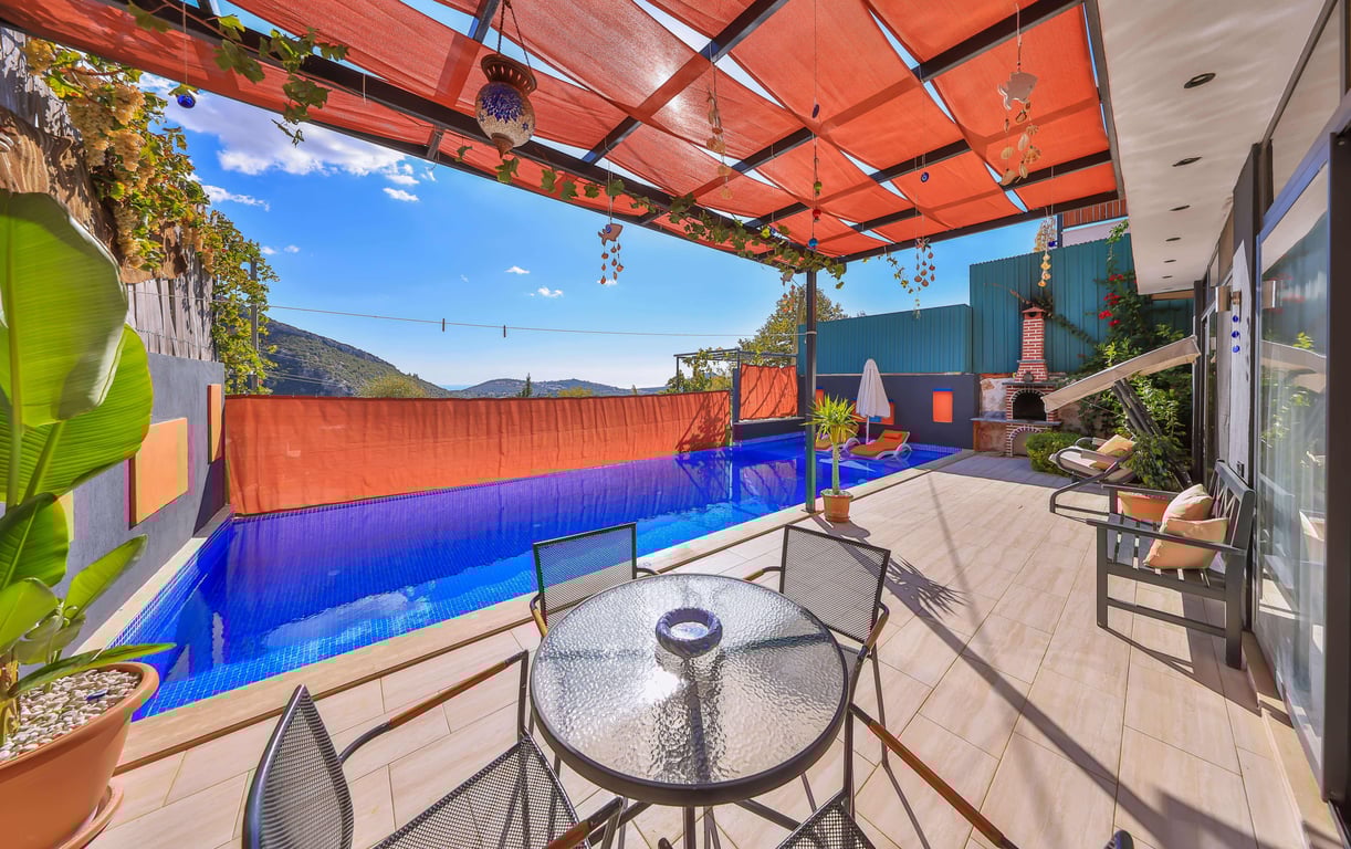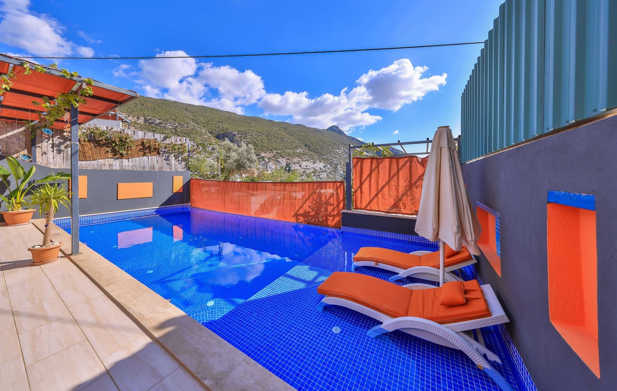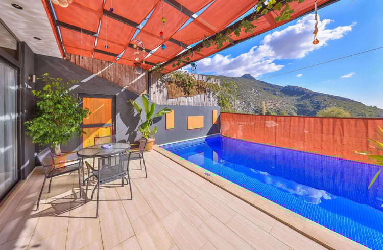 Villa Elif, Kalkan İslamlar bölgesinde konumlanmakta olan, yeşilliklerle kaplı doğa manzarasına hakim kiralık villalarımız arasında yer almaktadır. Lüks ve modern bir şekilde dizayn edilen villamızda 1 adet yatak odası bulunmakta olup, 2 kişiye konaklama imkanı sağlamaktadır. Aynı zamanda kış aylarında tatil planı yapmak isteyen misafirlerimiz için kapalı ısıtma havuzu yer almaktadır. Havuz ve havuz terası korunaklı hale getirilen yazlık villamızı muhafazakar aileler gönül rahatlığı ile tercih edebilirler. Hayallerinizin de ötesinde keyif dolu bir yazlık villada tatil için Villa Elif'i tercih edebilirsiniz.