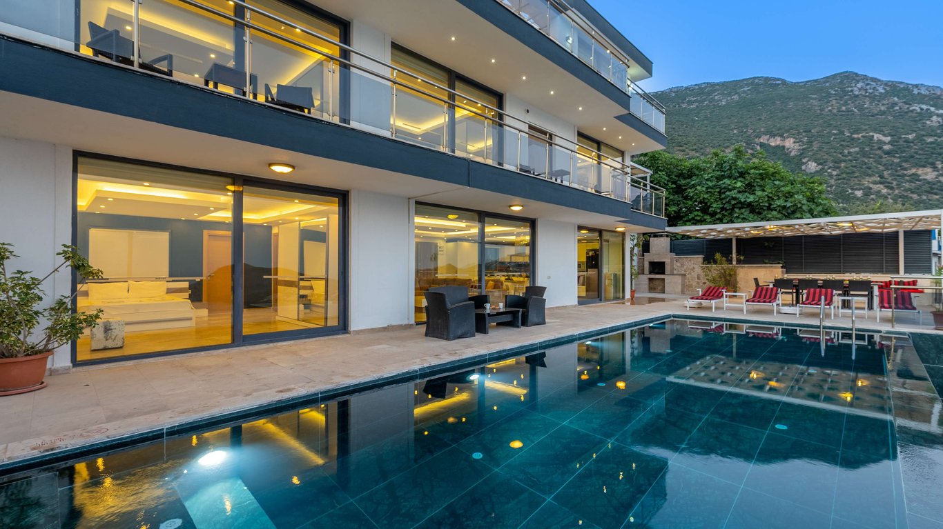 Havuzlu Kiralık Villa Kaş Kiralık Villa Kalabalık Aileler İçin Uygun Villa Antalya Kiralık Villa Jakuzili Deniz Manzaralı Dağ Manzaralı Kalkan Kiralık Villa