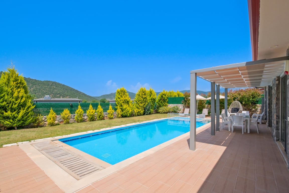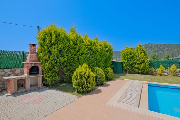 Villa Hayat Uno, Fethiye Kayaköy bölgesinde konumlanmakta olan, yeşilliklerle kaplı doğa manzarasına hâkim kiralık villalarımız arasında yer almaktadır. Lüks ve modern bir şekilde dizayn edilen villamızda 2 adet yatak odası bulunmakta olup, 4 kişiye konaklama imkânı sağlamaktadır. Yatak odalarından birinde yılın tüm yorgunluğunu atabileceğiniz jakuzi yer almaktadır. Havuz ve havuz terası korunaklı hale getirilen yazlık villamız, muhafazakâr aileler tarafından gönül rahatlığıyla tercih edilebilir. Keyif dolu bir tatil için Villa Hayat Uno’yu tercih edebilirsiniz.