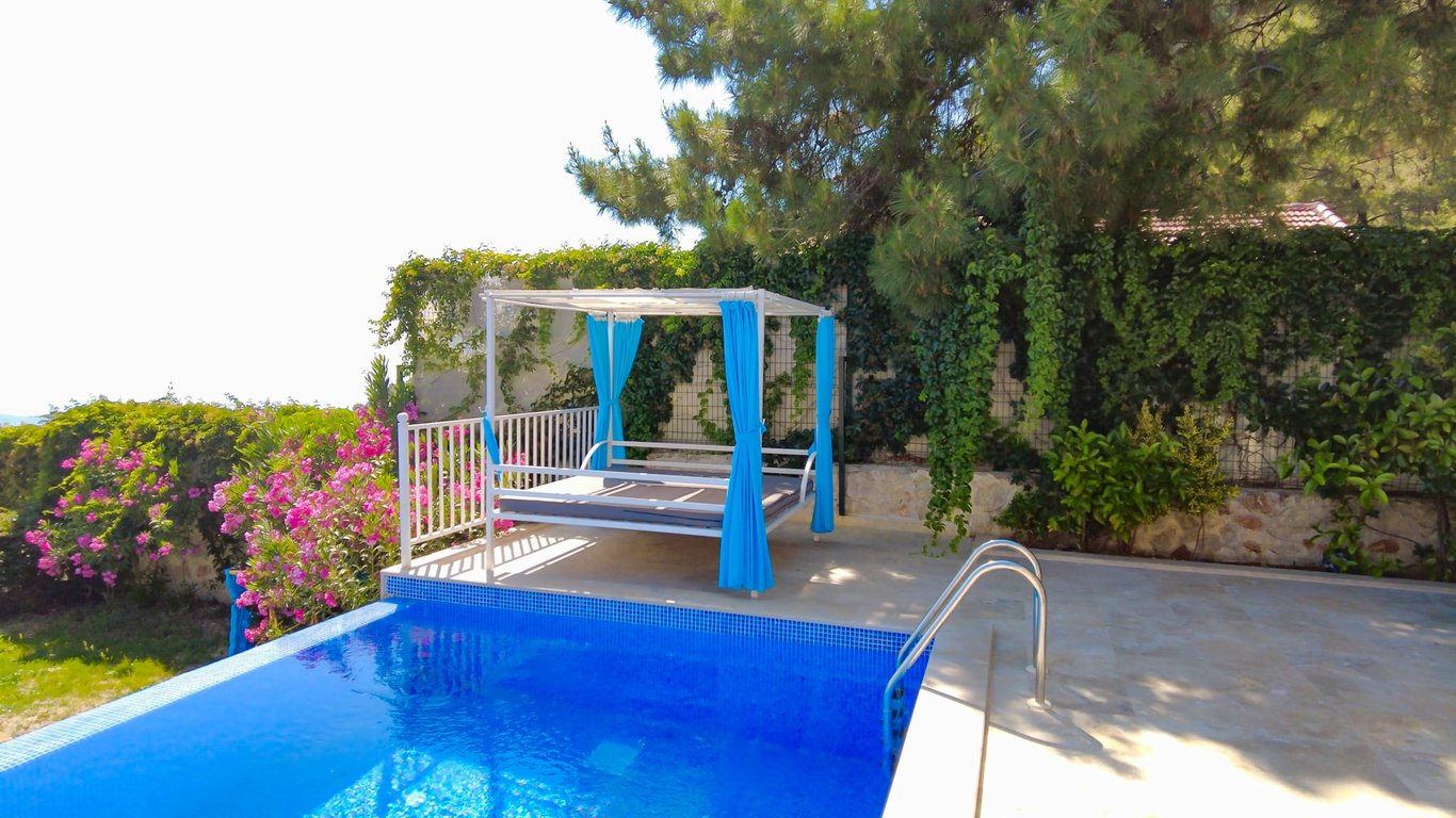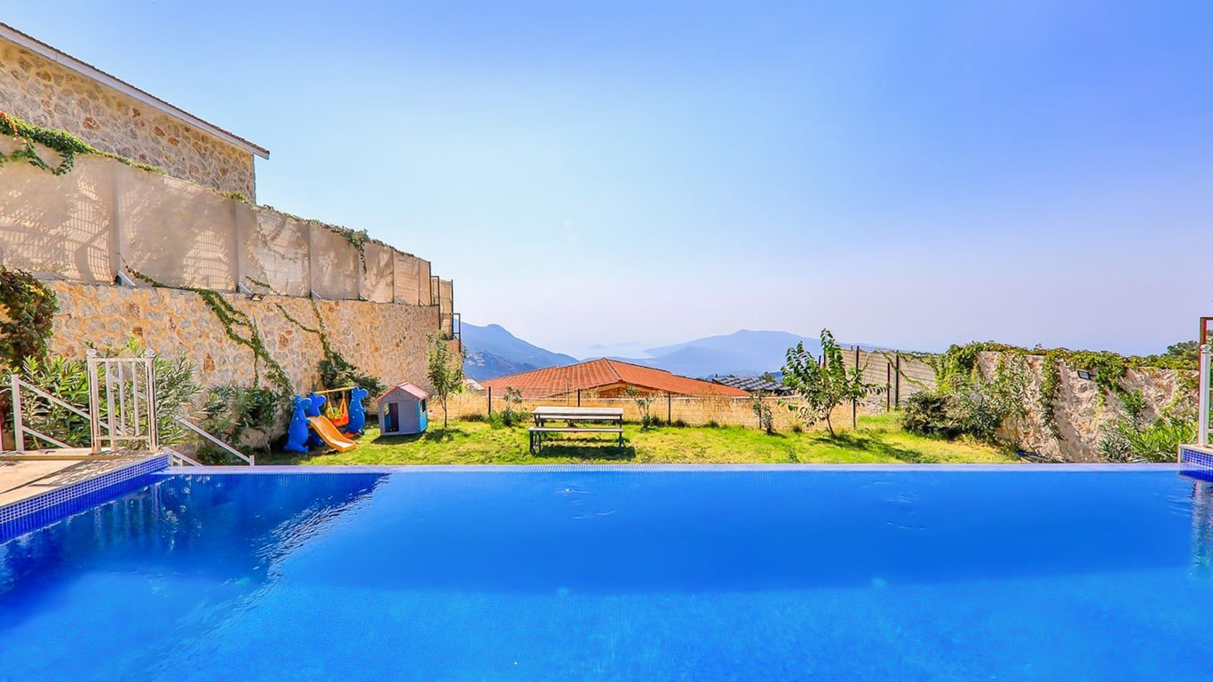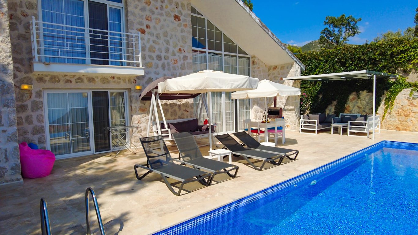 Villa Hira 2, Kalkan İslamlar bölgesinde konumlanmakta olan yeşilliklerle kaplı doğa manzarasına hakim kiralık villalarımız arasında yer almaktadır. Lüks ve modern bir şekilde dizayn edilen villamızda 2 adet yatak odası bulunmakta olup, 4 kişiye konaklama imkanı sağlamaktadır. Yatak odalarından bir tanesinin içerisinde tüm yılın vermiş olduğu yorgunluğu giderebileceğiniz jakuzi yer almaktadır. Havuz ve havuz terası korunaklı hale getirilen yazlık villamızı muhafazakar aileler gönül rahatlığı ile tercih edebilirler. Hayallerinizin de ötesinde keyif dolu bir yazlık villada tatil için Villa Hira 2'yi tercih edebilirsiniz.