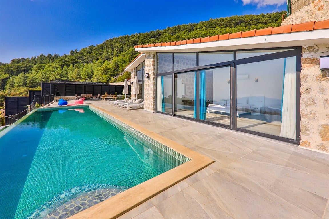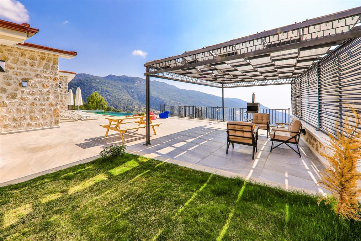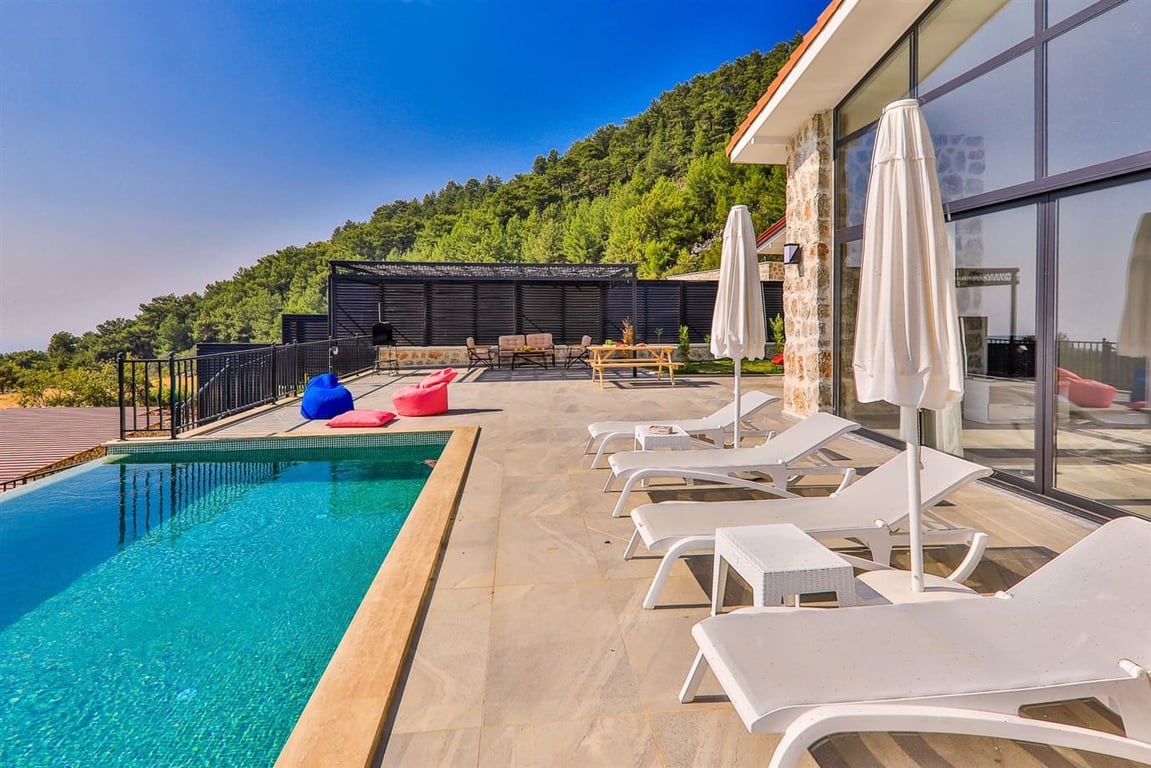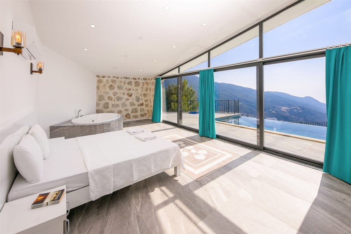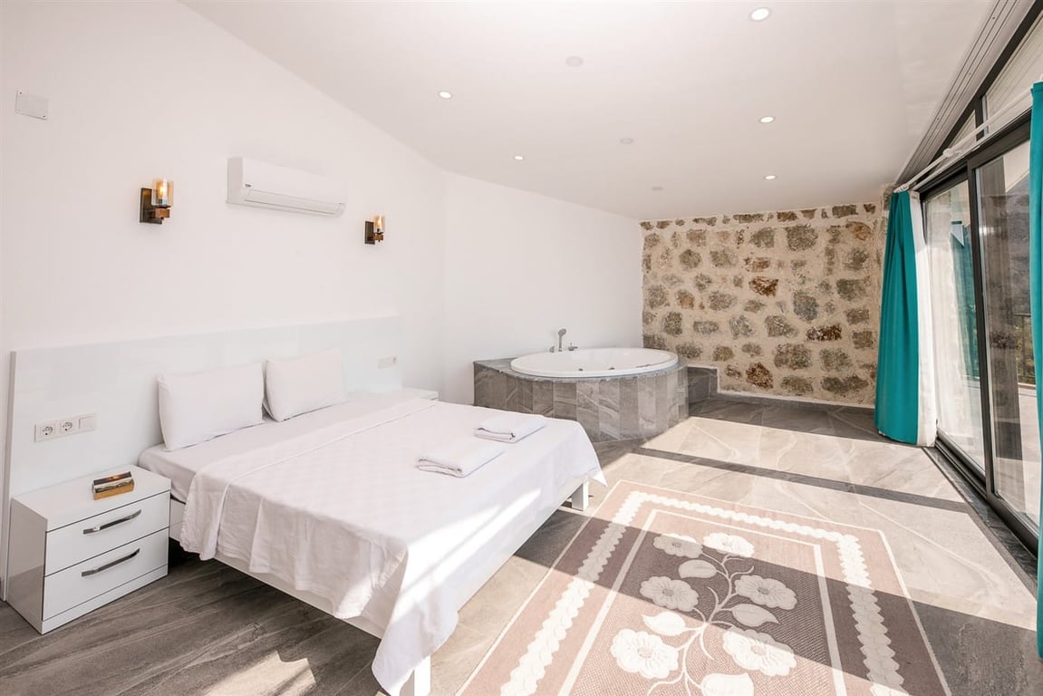 Villa Hira 5 Kalkan İslamlar bölgesinde konumlanmakta olan yeşilliklerle kaplı doğa manzarasına hakim kiralık villalarımız arasında yer almaktadır. Lüks ve modern bir şekilde dizayn edilen villamızda 2 adet yatak odası bulunmakta olup, 4 kişiye konaklama imkanı sağlamaktadır. Yatak odalarından bir tanesinin içerisinde tüm yılın vermiş olduğu yorgunluğu giderebileceğiniz jakuzi yer almaktadır. Hayallerinizin de ötesinde keyif dolu bir yazlık villada tatil için Villa Hira 5'i tercih edebilirsiniz.