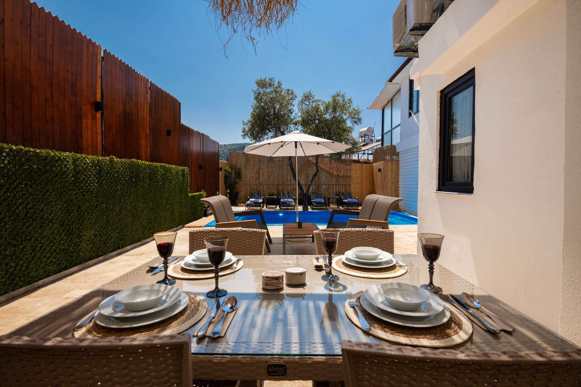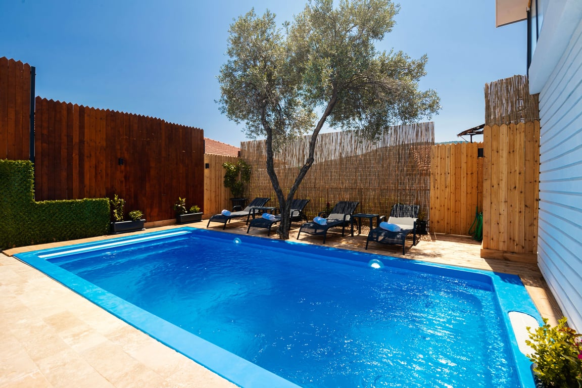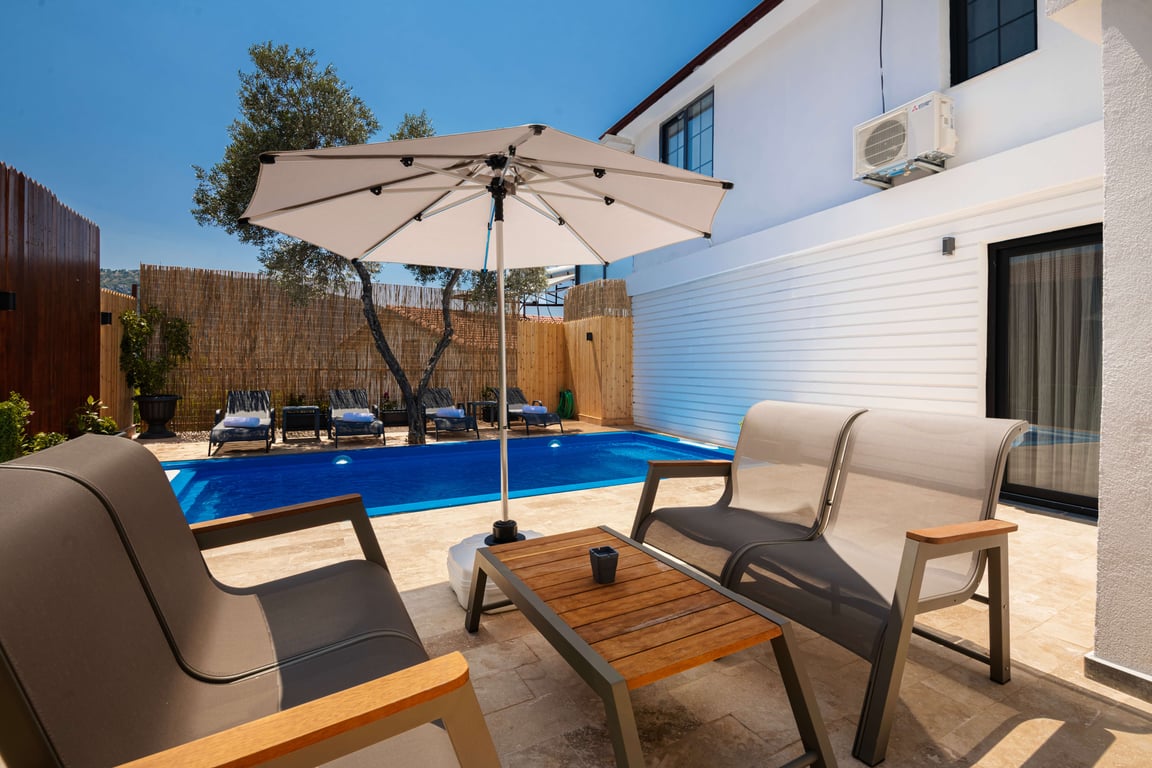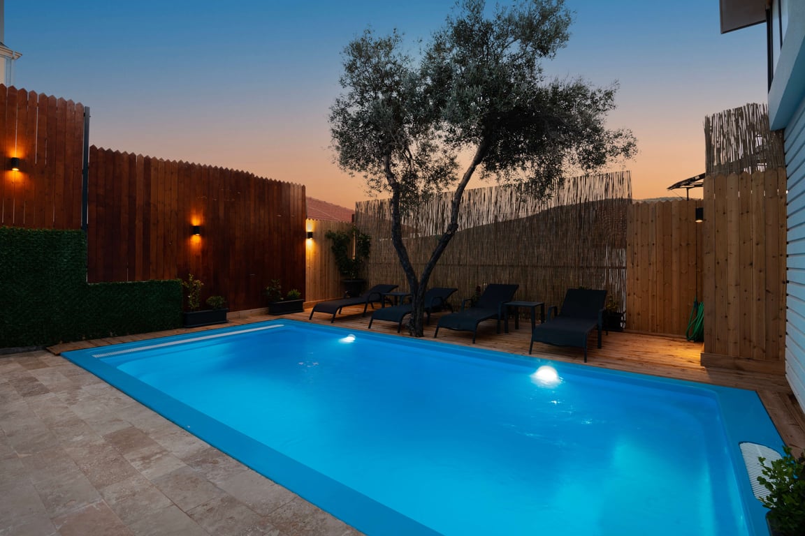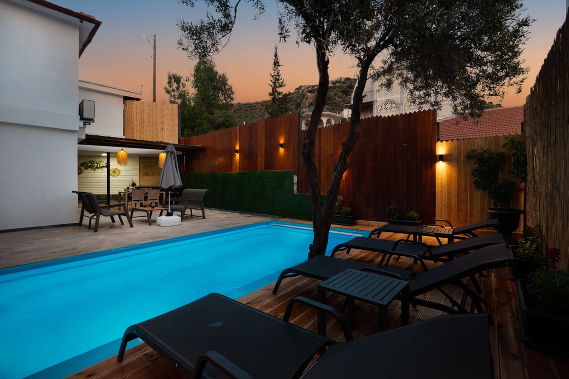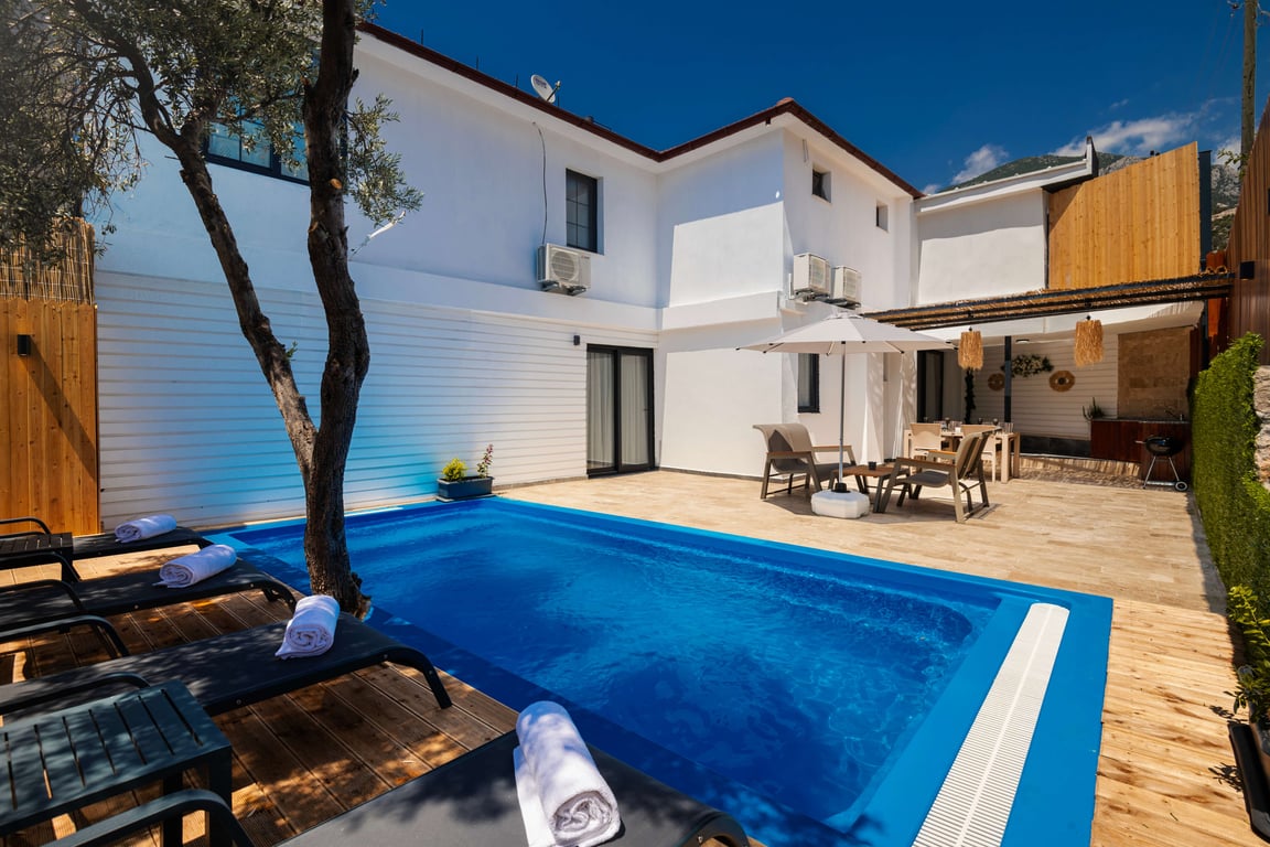 Villa Kiraz 2, Kalkan Ulugöl bölgesinde konumlanmakta olan, yeşilliklerle kaplı doğa manzarasına hakim kiralık villalarımız arasında yer almaktadır. Lüks ve modern bir şekilde dizayn edilen villamızda 2 adet yatak odası bulunmakta olup, 4 kişiye konaklama imkanı sağlamaktadır. Yatak odalarından birinde yer alan jakuzi, tüm yılın yorgunluğunu geride bırakmanız için sizleri beklemektedir. Havuz ve havuz terası korunaklı hale getirilen villamız, muhafazakar aileler tarafından gönül rahatlığıyla tercih edilebilir. Hayalinizdeki tatili yaşamak için Villa Kiraz 2 sizleri bekliyor.