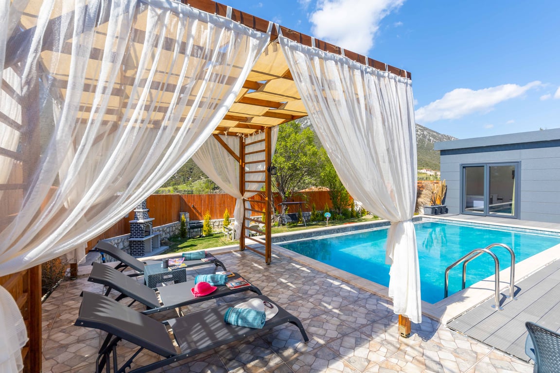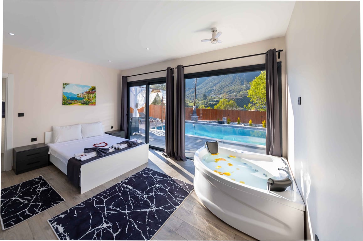 Muhafazakar Kiralık Villa Antalya Kiralık Villa Jakuzili Balayı Kiralık Villa Muhafazakar Villa Balayı Villası Dağ Manzaralı Kalkan Kiralık Villa