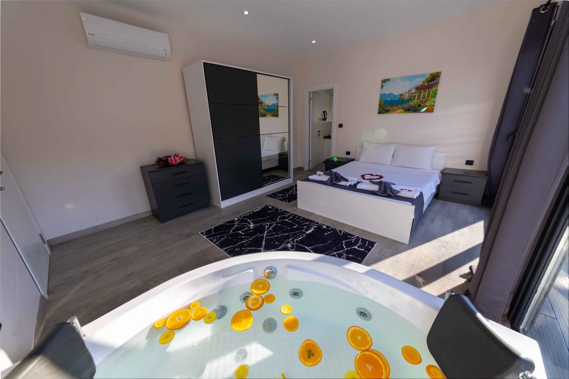 Çift kişilik yatak, banyo/wc ve jakuzi bulunmaktadır.