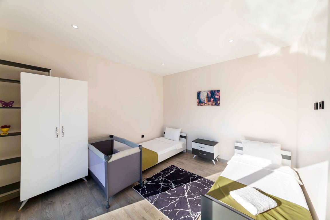 Üç adet tek kişilik yatak, banyo/wc bulunmaktadır.