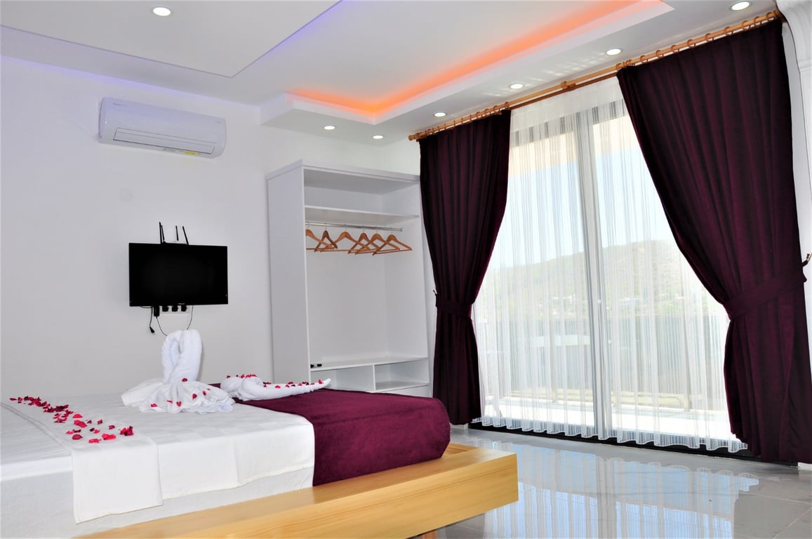 Villa Lotus Patara, Kalkan Patara bölgesinde konumlanmakta olan, yeşilliklerle kaplı doğa manzarasına hâkim kiralık villalarımız arasında yer almaktadır. Lüks ve modern bir şekilde dizayn edilen villamızda 2 adet yatak odası bulunmakta olup, 4 kişiye konaklama imkânı sağlamaktadır. Yatak odalarından birinde, tüm yılın vermiş olduğu yorgunluğu giderebileceğiniz jakuzi yer almaktadır. Havuz ve havuz terası korunaklı hale getirilen yazlık villamız, muhafazakâr aileler tarafından gönül rahatlığıyla tercih edilebilir. Hayallerinizin de ötesinde keyif dolu bir tatil için Villa Lotus Patara’yı tercih edebilirsiniz.