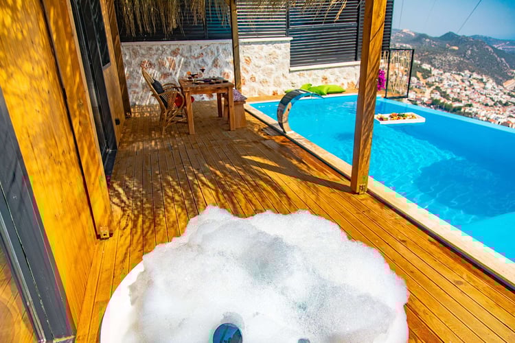 Ebeveyn yatak odasında, tüm yılın yorgunluğunu atabileceğiniz jakuzi bulunmaktadır. Hayallerinizin ötesinde bir tatil için Villa Mia House’u tercih edebilirsiniz.
