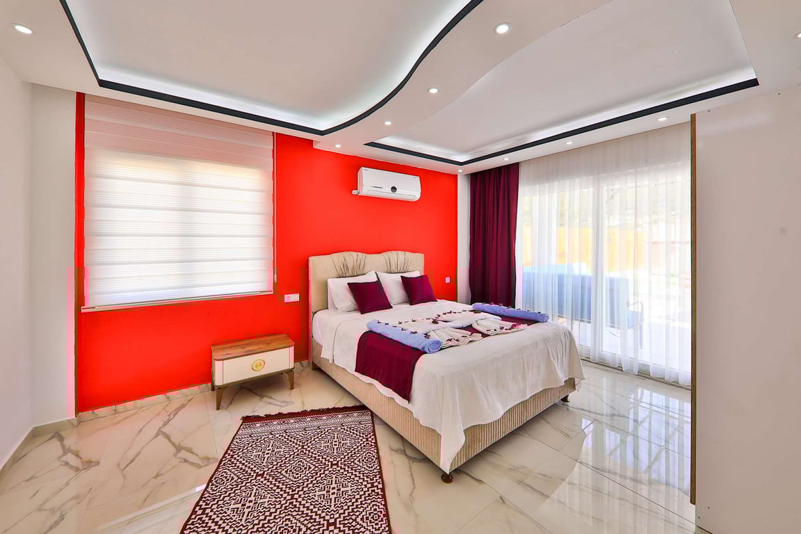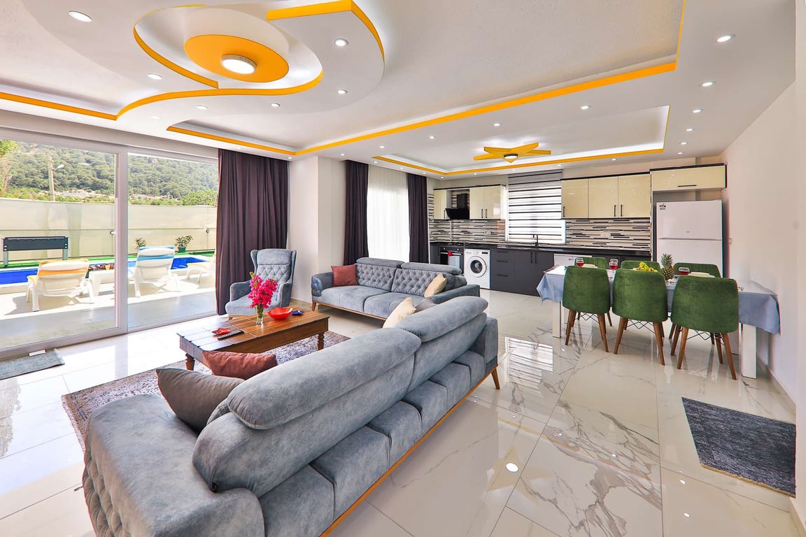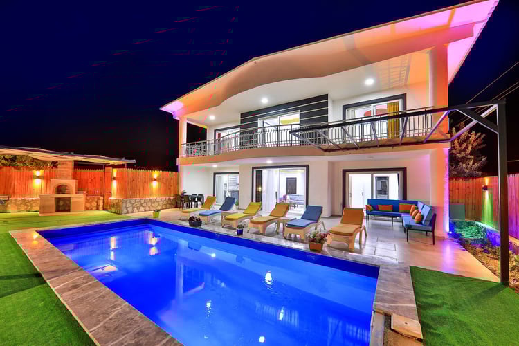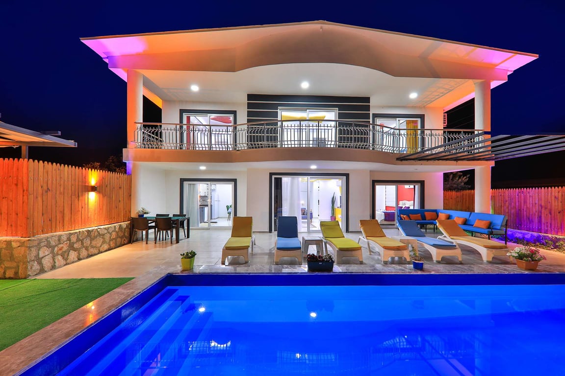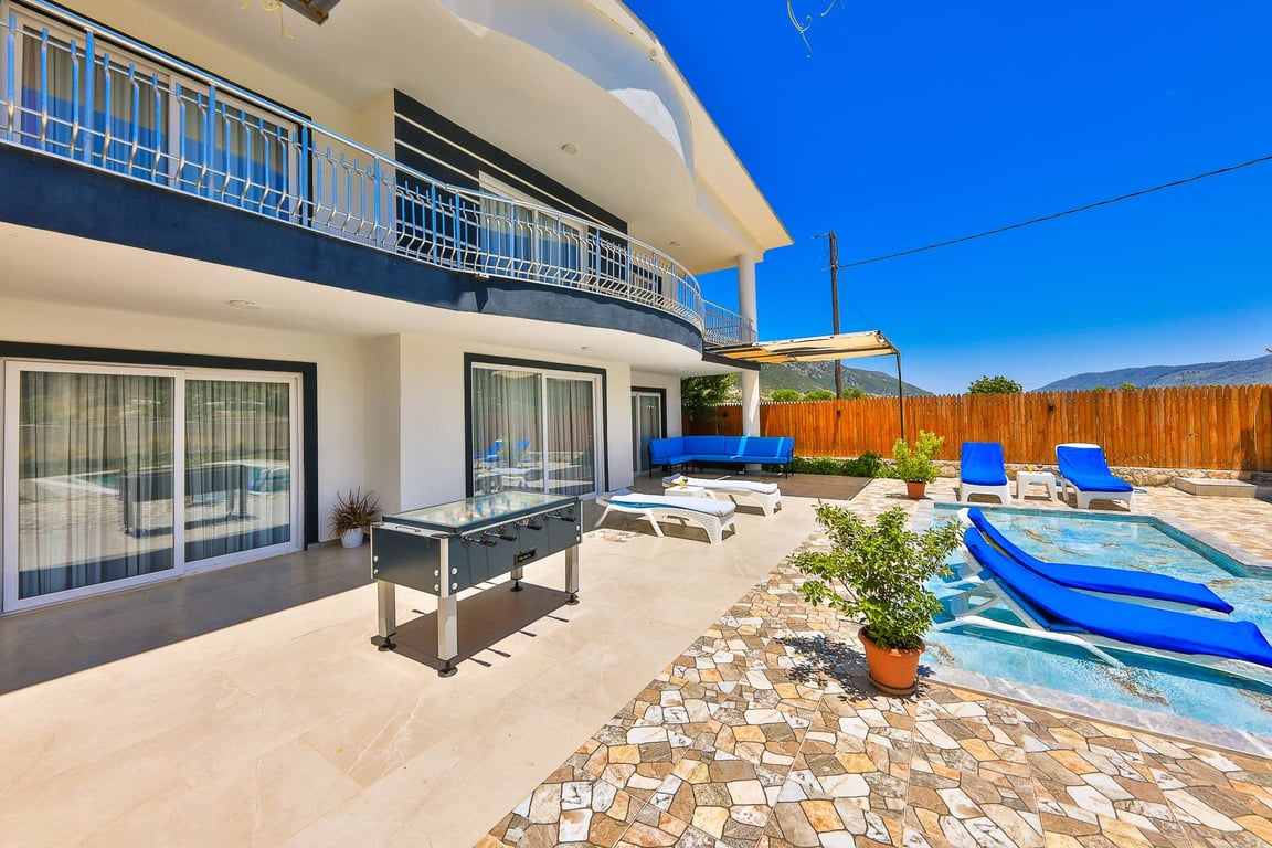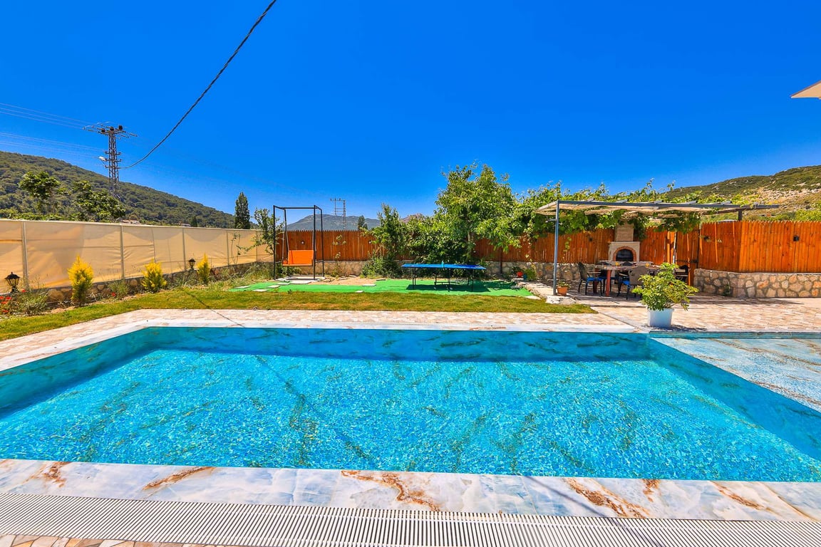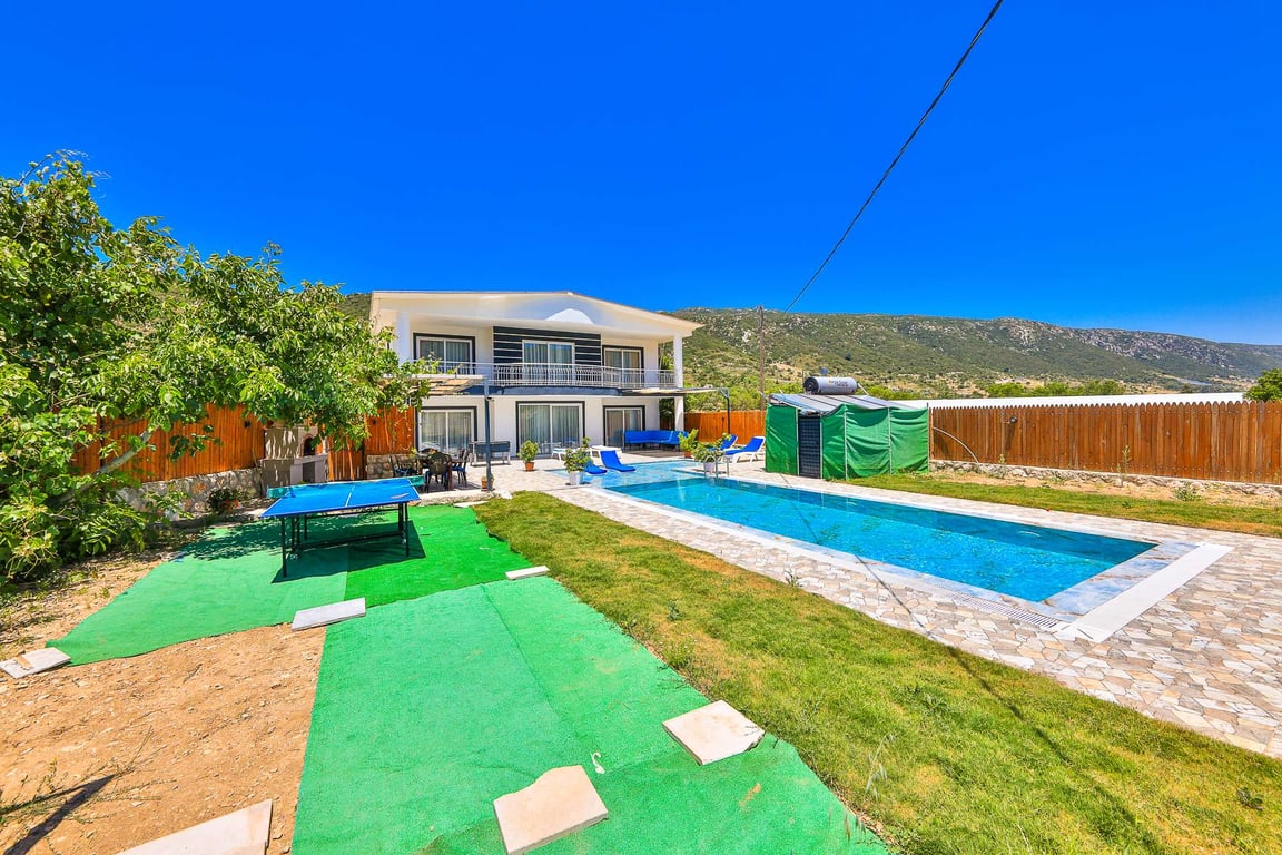 Villa Miranda, Kalkan Sarıbelen bölgesinde konumlanmakta olan, yeşilliklerle kaplı doğa manzarasına hakim kiralık villalarımız arasında yer almaktadır. Lüks ve modern bir şekilde dizayn edilen villamızda 3 adet yatak odası bulunmakta olup, 6 kişiye konaklama imkanı sağlamaktadır. Yatak odalarından bir tanesinin içerisinde tüm yılın vermiş olduğu yorgunluğu giderebileceğiniz jakuzi yer almaktadır. Havuz ve havuz terası korunaklı hale getirilen yazlık villamızı muhafazakar aileler gönül rahatlığı ile tercih edebilirler. Hayallerinizin de ötesinde keyif dolu bir yazlık villada tatil için Villa Miranda'yı tercih edebilirsiniz.