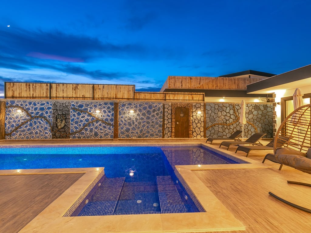 Villa İncir, Kalkan Çavdır bölgesinde konumlanmakta olan yeşilliklerle kaplı doğa manzarasına hakim kiralık villalarımız arasında yer almaktadır. Lüks ve modern bir şekilde dizayn edilen villamızda 2 adet yatak odası bulunmakta olup, 4 kişiye konaklama imkanı sağlamaktadır. Yatak odalarından bir tanesinin içerisinde, tüm yılın vermiş olduğu yorgunluğu giderebileceğiniz jakuzi yer almaktadır. Havuz ve havuz terası korunaklı hale getirilen yazlık villamızı muhafazakar aileler gönül rahatlığı ile tercih edebilirler. Hayallerinizin de ötesinde keyif dolu bir yazlık villada tatil için Villa İncir'i tercih edebilirsiniz.