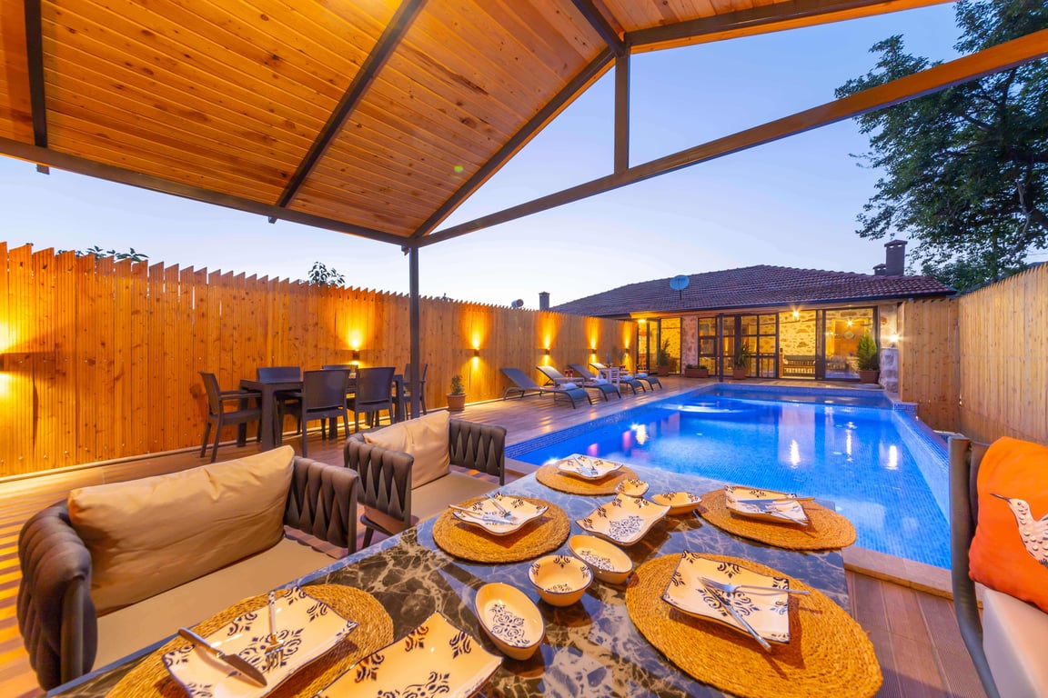 Saunalı Villa Havuzlu Kiralık Villa Doğa İle İç İçe Muhafazakar Kiralık Villa Kaş Kiralık Villa Kalabalık Aileler İçin Uygun Villa Antalya Kiralık Villa Jakuzili Balayı Kiralık Villa Muhafazakar Villa Balayı Villası Dağ Manzaralı Sığ ve Çocuk Havuzlu Villa Kalkan Kiralık Villa