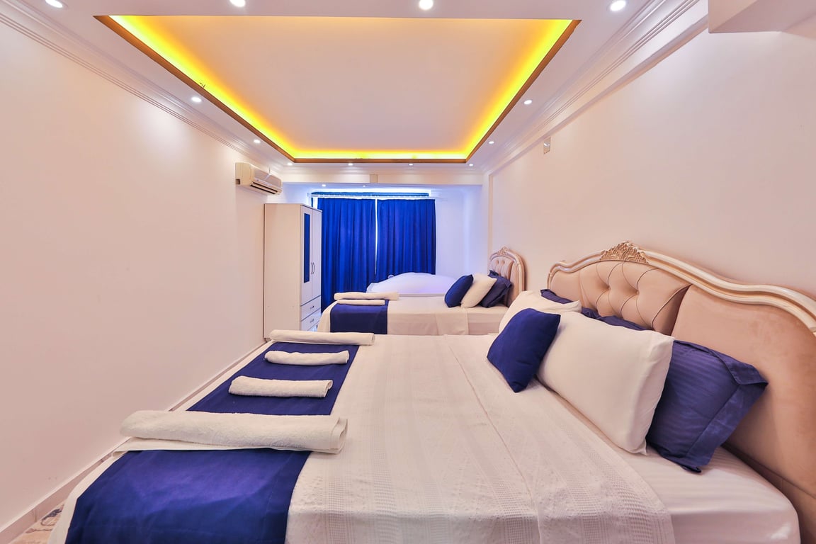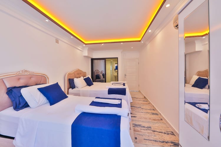 2-Çift kişilik yatak, 1 adet tek kişilik yatak, jakuzi ve banyo/WC bulunmaktadır.