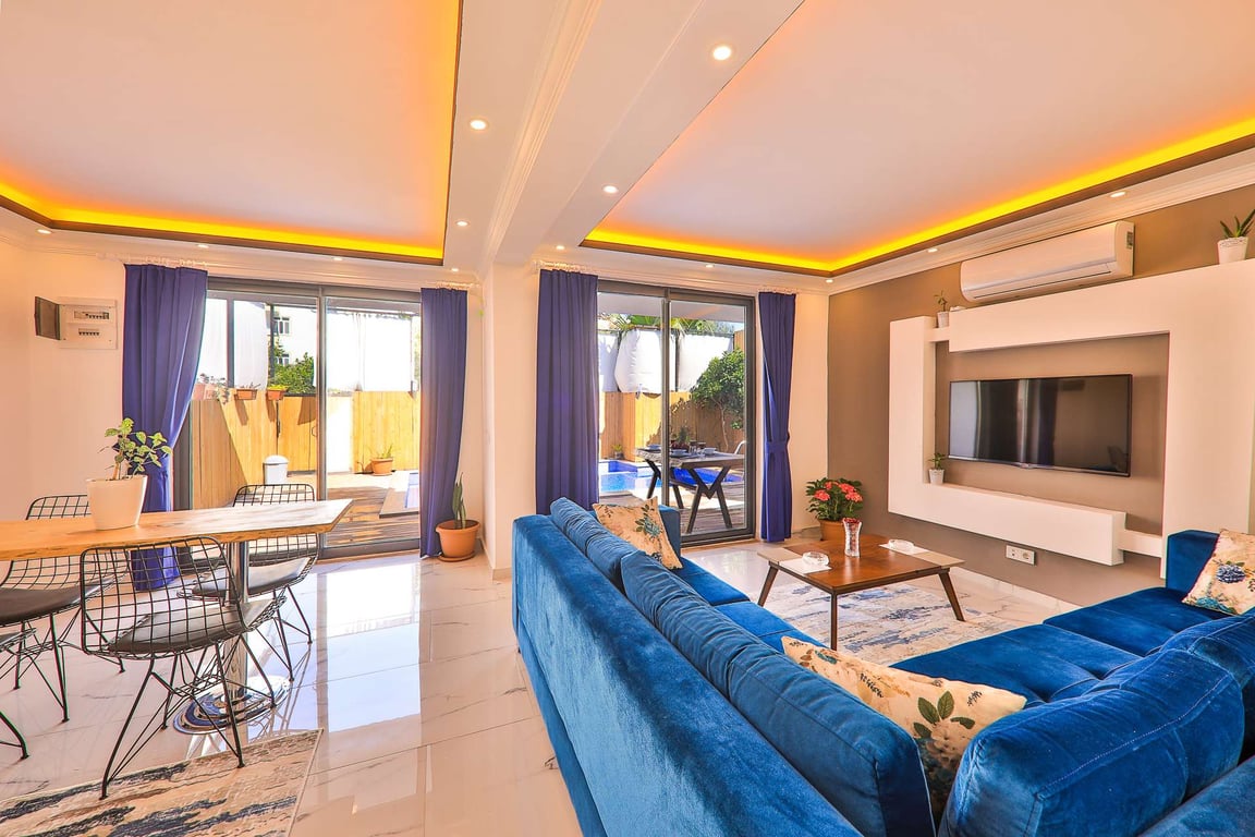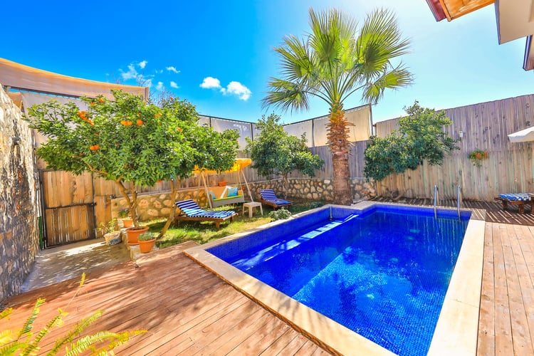 Villa Portakal Çiçeği 1, Kalkan Patara bölgesinde konumlanmakta olan, yeşilliklerle kaplı doğa manzarasına hâkim kiralık villalarımız arasında yer almaktadır. Lüks ve modern bir şekilde dizayn edilen villamızda 2 adet yatak odası bulunmakta olup, 5 kişiye konaklama imkânı sağlamaktadır. Yatak odalarının iki tanesinin içerisinde de tüm yılın vermiş olduğu yorgunluğu giderebileceğiniz jakuzi yer almaktadır. Havuz ve havuz terası korunaklı hale getirilen yazlık villamızı muhafazakâr aileler gönül rahatlığı ile tercih edebilirler. Hayallerinizin de ötesinde keyif dolu bir yazlık villada tatil için Villa Portakal Çiçeği 1'i tercih edebilirsiniz.