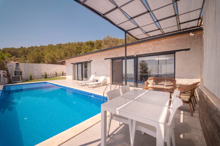 Villa Savaş, Kalkan İslamlar bölgesinde konumlanmakta olan yeşilliklerle kaplı doğa manzarasına hâkim kiralık villalarımız arasında yer almaktadır. Lüks ve modern bir şekilde dizayn edilen villamızda 1 adet yatak odası bulunmakta olup, 2 kişiye konaklama imkânı sağlamaktadır. Yatak odasında tüm yılın vermiş olduğu yorgunluğu giderebileceğiniz jakuzi yer almaktadır. Havuz ve havuz terası korunaklı hâle getirilen yazlık villamızı muhafazakâr aileler gönül rahatlığı ile tercih edebilirler. Hayallerinizin de ötesinde keyif dolu bir yazlık villada tatil için Villa Savaş’ı tercih edebilirsiniz.