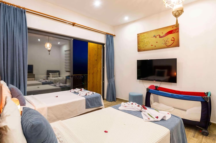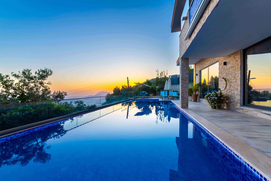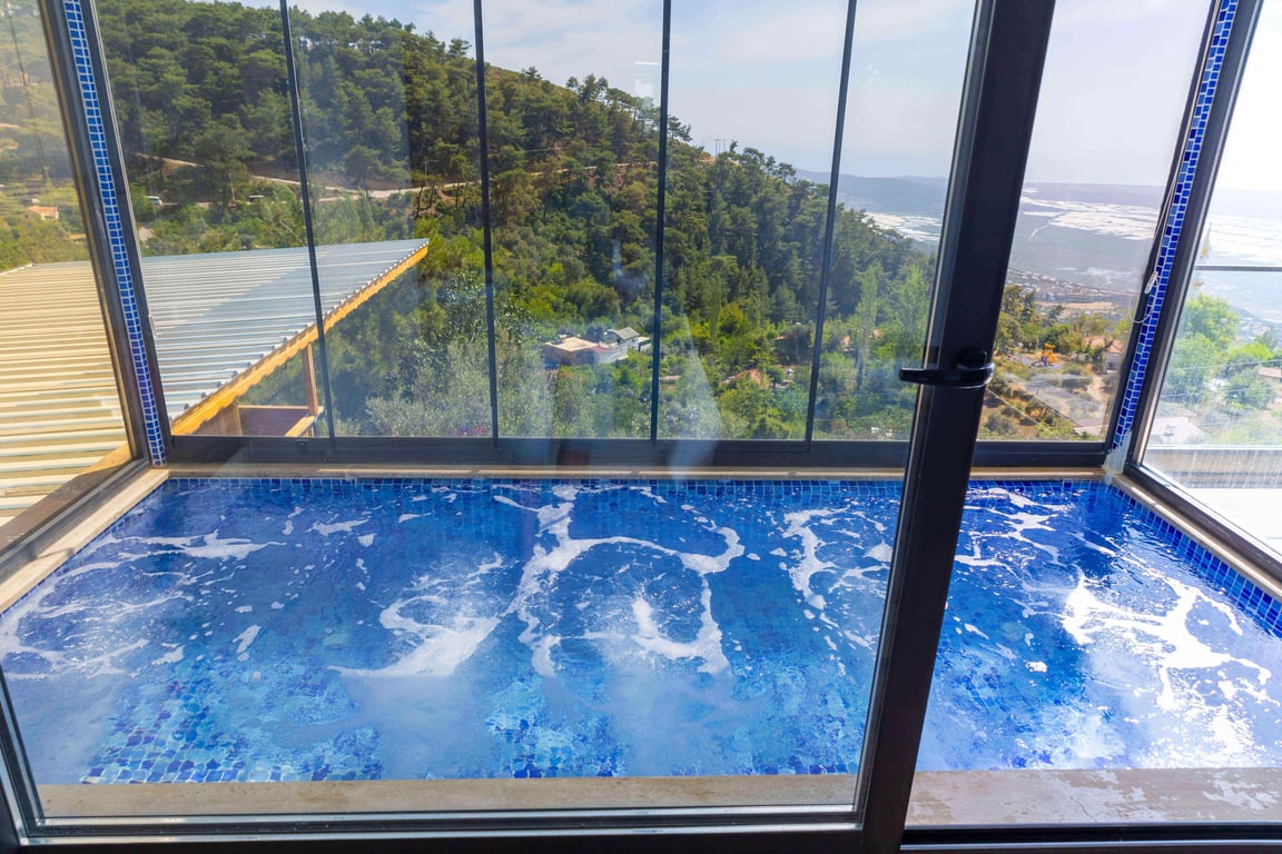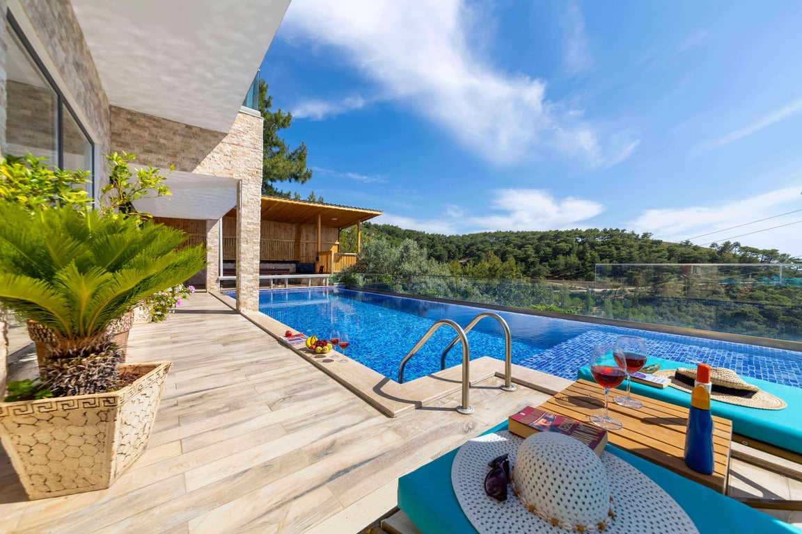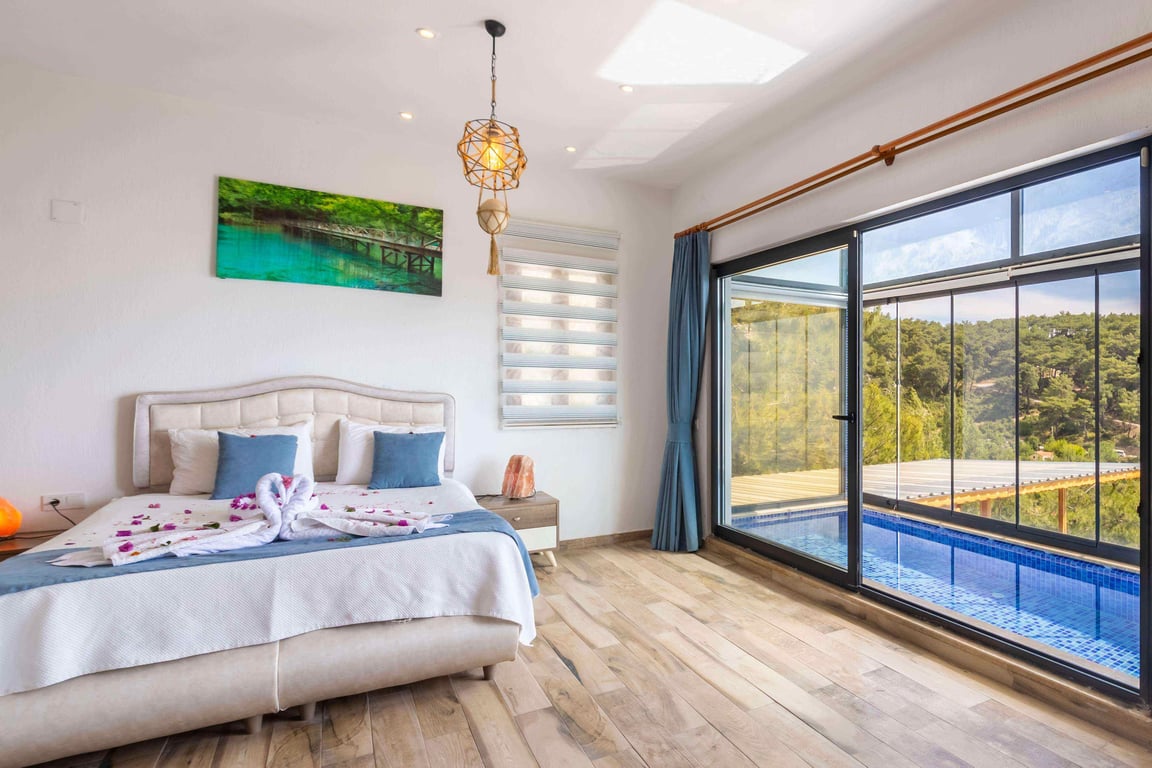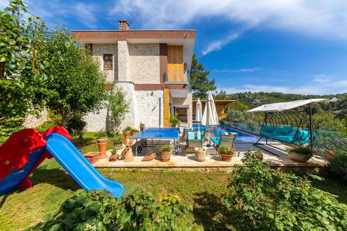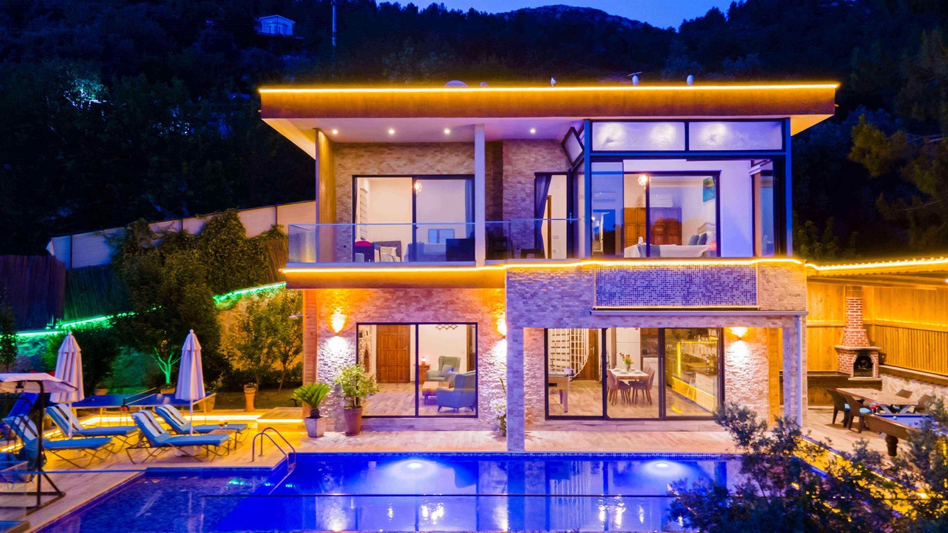 Villa Şelale, Kalkan Lapaz bölgesinde konumlanmakta olan, yeşilliklerle kaplı doğa manzarasına hâkim kiralık villalarımız arasında yer almaktadır. Lüks ve modern bir şekilde dizayn edilen villamızda 2 adet yatak odası bulunmakta olup, 5 kişiye konaklama imkânı sağlamaktadır. Yatak odalarından bir tanesinin içerisinde, tüm yılın vermiş olduğu yorgunluğu giderebileceğiniz jakuzi özelliğinin de bulunduğu ısıtmalı havuz yer almaktadır. Havuz ve havuz terası korunaklı hale getirilen yazlık villamızı muhafazakâr aileler gönül rahatlığı ile tercih edebilirler. Hayallerinizin de ötesinde keyif dolu bir yazlık villada tatil için Villa Şelale’yi tercih edebilirsiniz.