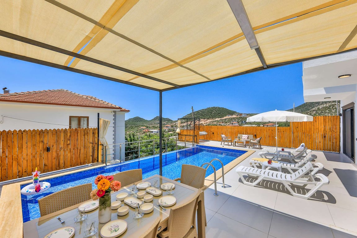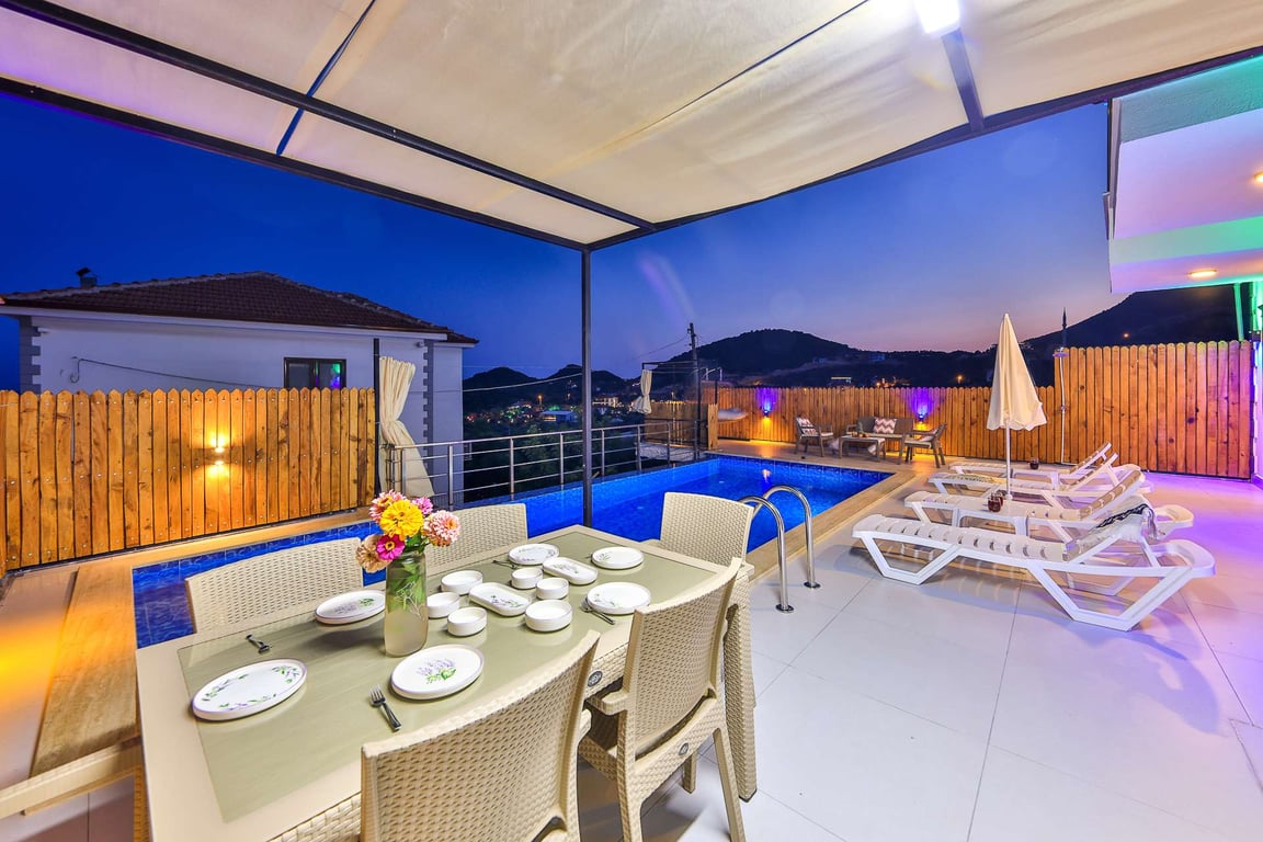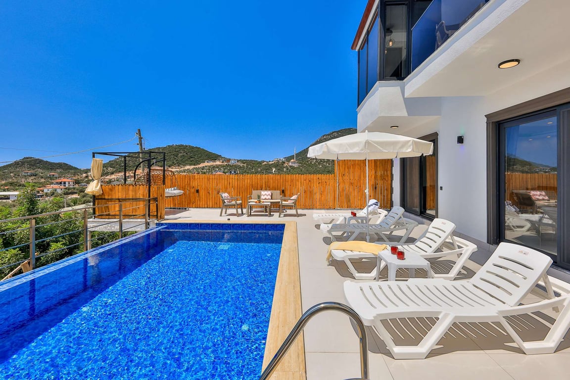Villa Seyran, Kaş Bayındır bölgesinde konumlanmakta olan, deniz ve yeşilliklerle kaplı doğa manzarasına hakim kiralık villalarımız arasında yer almaktadır. Lüks ve modern bir şekilde dizayn edilen villamızda 2 adet yatak odası bulunmakta olup, 4 kişiye konaklama imkanı sağlamaktadır. Yatak odalarından bir tanesinin içerisinde, tüm yılın vermiş olduğu yorgunluğu giderebileceğiniz jakuzi yer almaktadır. Havuz ve havuz terası korunaklı hale getirilen yazlık villamızı muhafazakar aileler gönül rahatlığı ile tercih edebilirler. Hayallerinizin de ötesinde keyif dolu bir yazlık villada tatil için Villa Seyran'ı tercih edebilirsiniz.