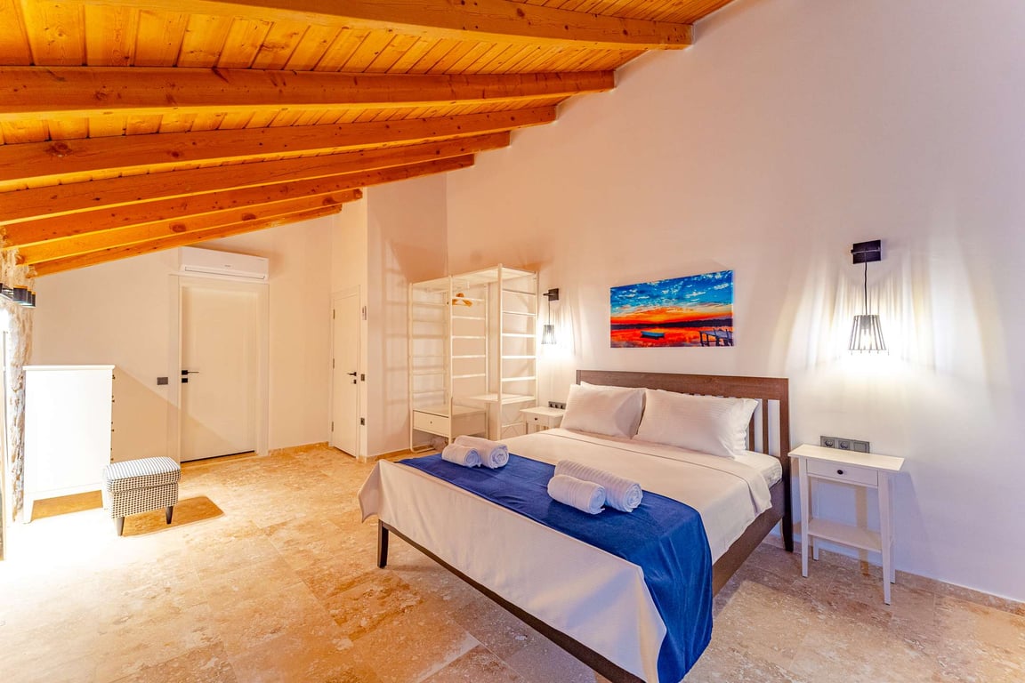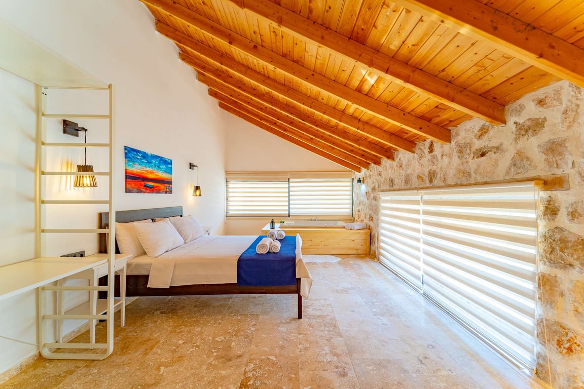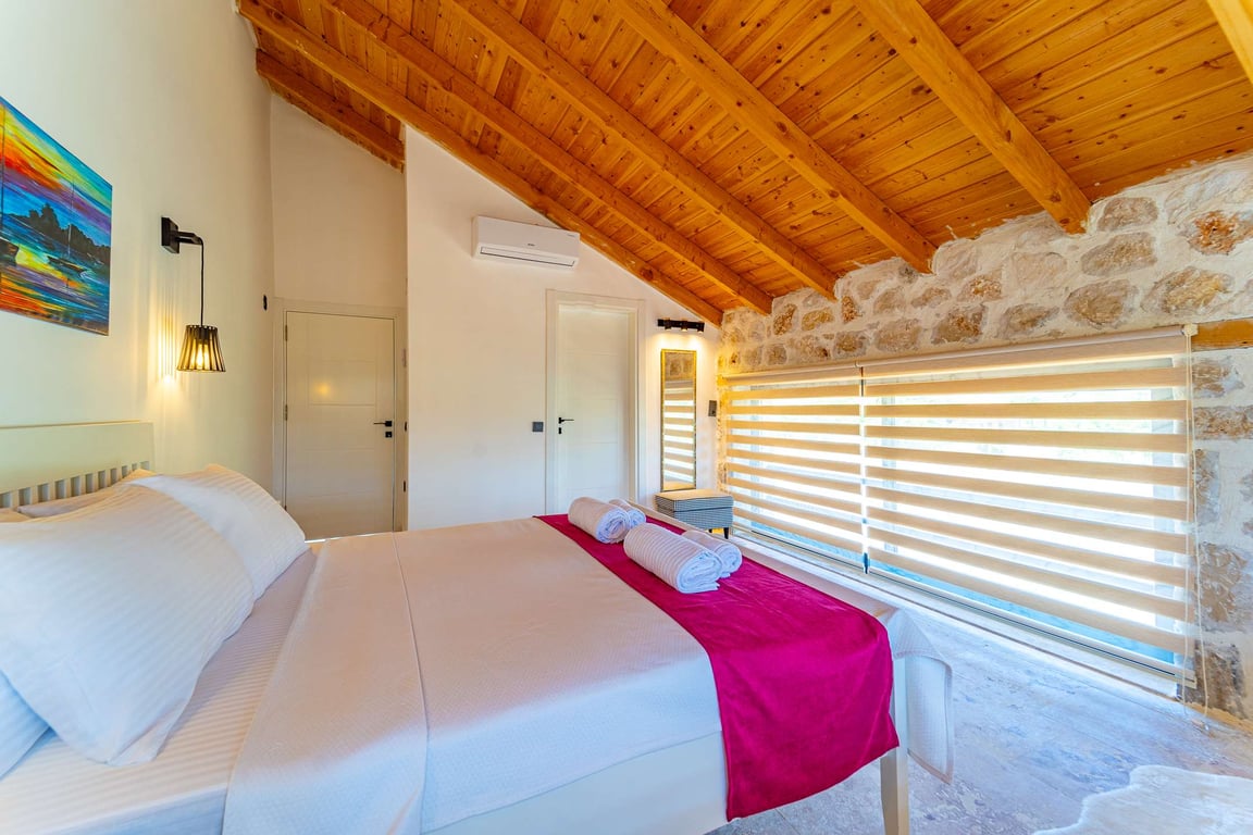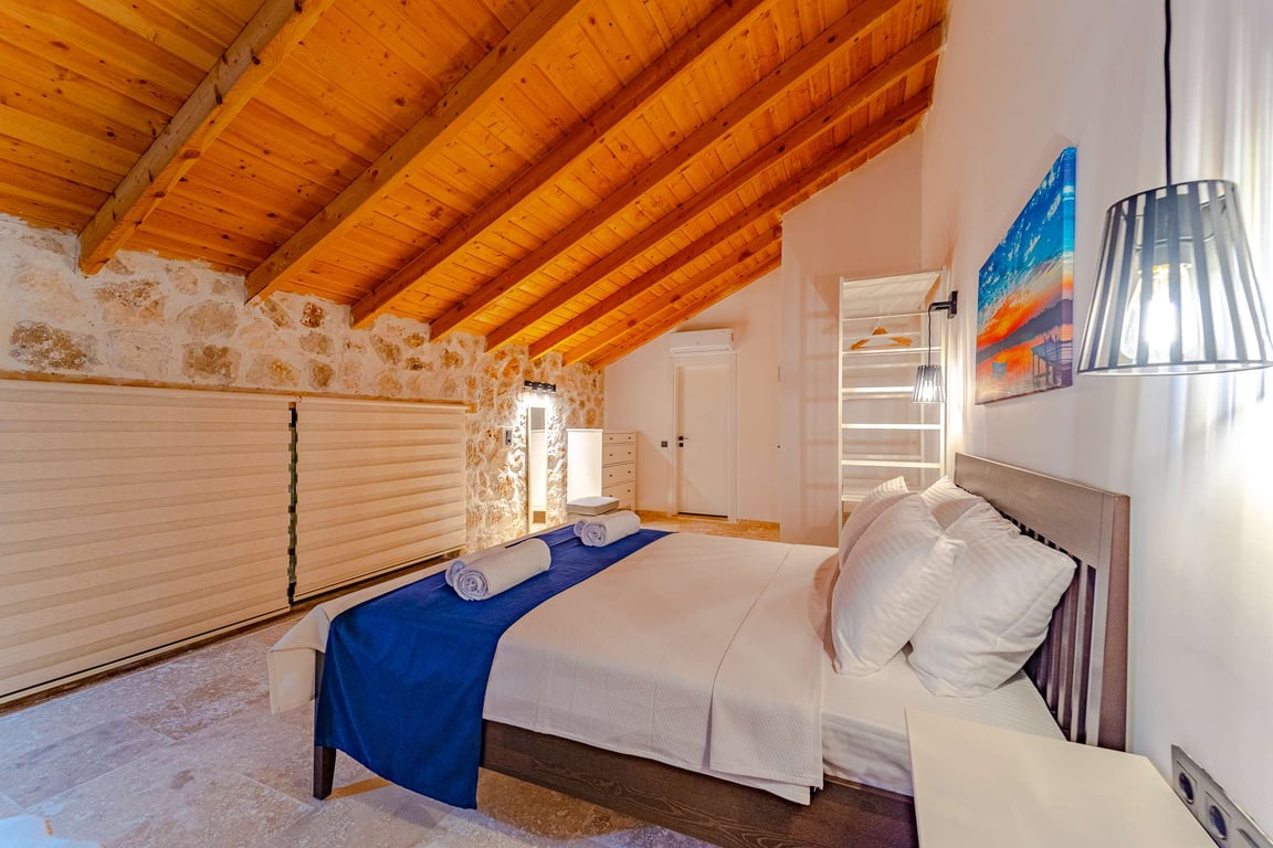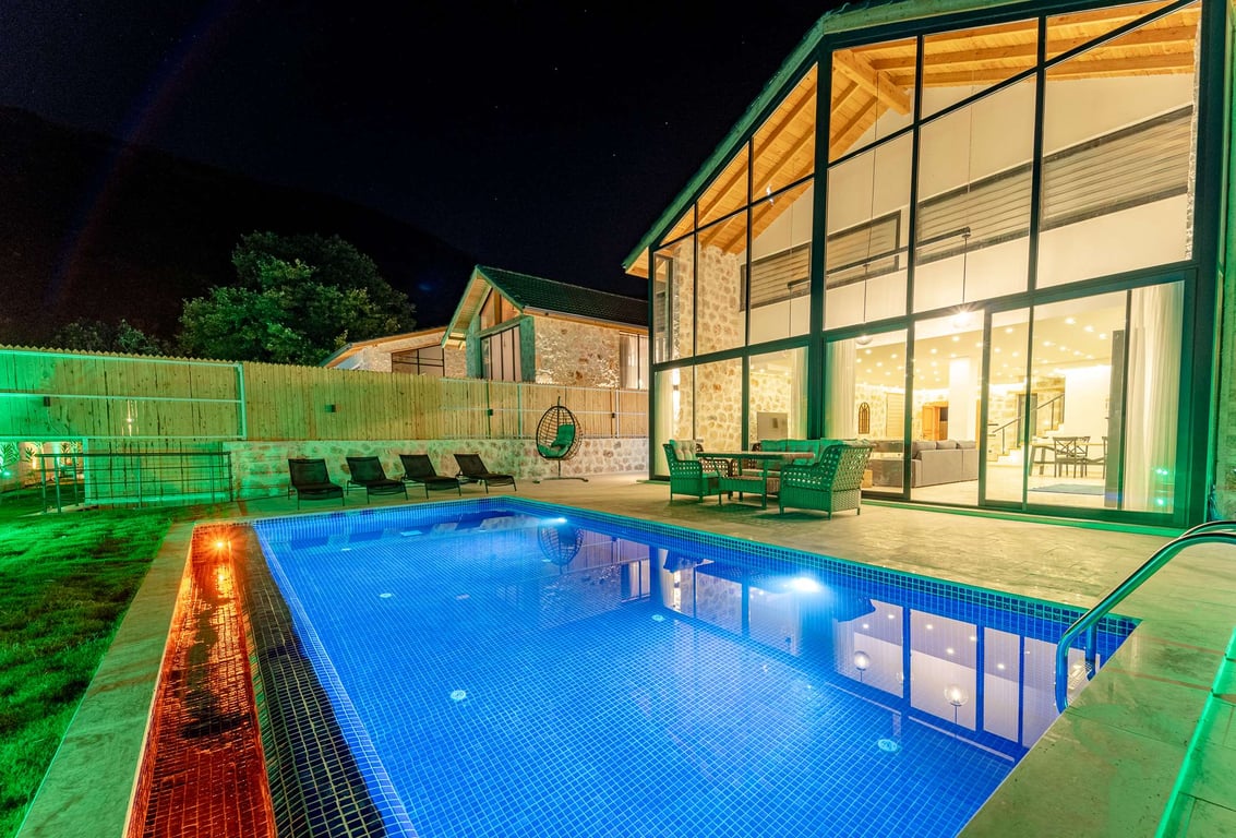 Villa Sirius, Kalkan Bezirgan bölgesinde konumlanmakta olan, yeşilliklerle kaplı doğa manzarasına hakim kiralık villalarımız arasında yer almaktadır. Lüks ve modern bir şekilde dizayn edilen villamızda 2 adet yatak odası bulunmakta olup, 4 kişiye konaklama imkanı sağlamaktadır. Yatak odalarından bir tanesinin içerisinde jakuzi yer almaktadır; bu sayede tüm yılın vermiş olduğu yorgunluğu giderebilirsiniz. Havuz ve havuz terası korunaklı hale getirilen yazlık villamızı muhafazakar aileler gönül rahatlığı ile tercih edebilirler. Hayallerinizin de ötesinde keyif dolu bir yazlık villada tatil için Villa Sirius’u tercih edebilirsiniz.
