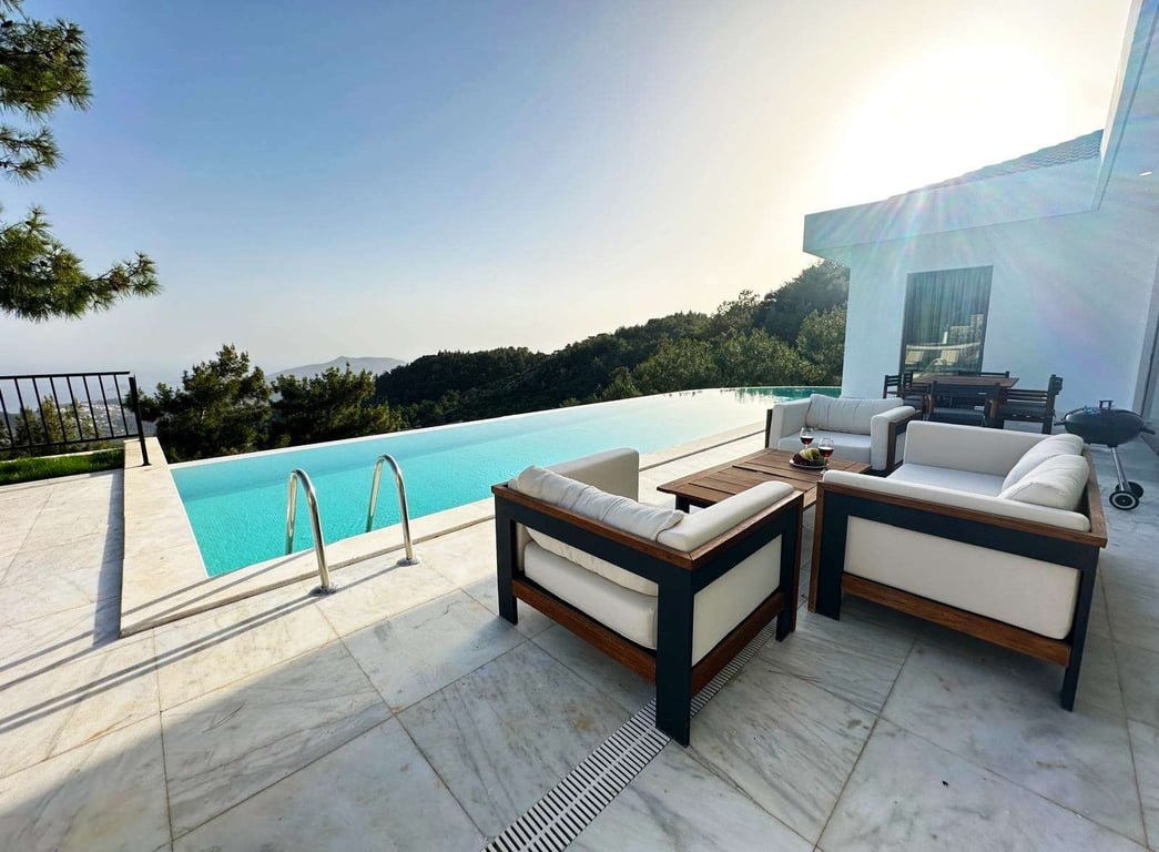 Villa Sun Planet, Kalkan İslamlar bölgesinde konumlanmakta olan, yeşilliklerle kaplı doğa manzarasına hakim kiralık villalarımız arasında yer almaktadır. Lüks ve modern bir şekilde dizayn edilen villamızda 2 adet yatak odası bulunmakta olup, 4 kişiye konaklama imkanı sağlamaktadır. Yatak odalarından bir tanesinin içerisinde, tüm yılın vermiş olduğu yorgunluğu giderebileceğiniz jakuzi yer almaktadır. Havuz ve havuz terası korunaklı hale getirilen yazlık villamızı muhafazakar aileler gönül rahatlığı ile tercih edebilirler. Hayallerinizin de ötesinde keyif dolu bir yazlık villada tatil için Villa Sun Planet’i tercih edebilirsiniz.