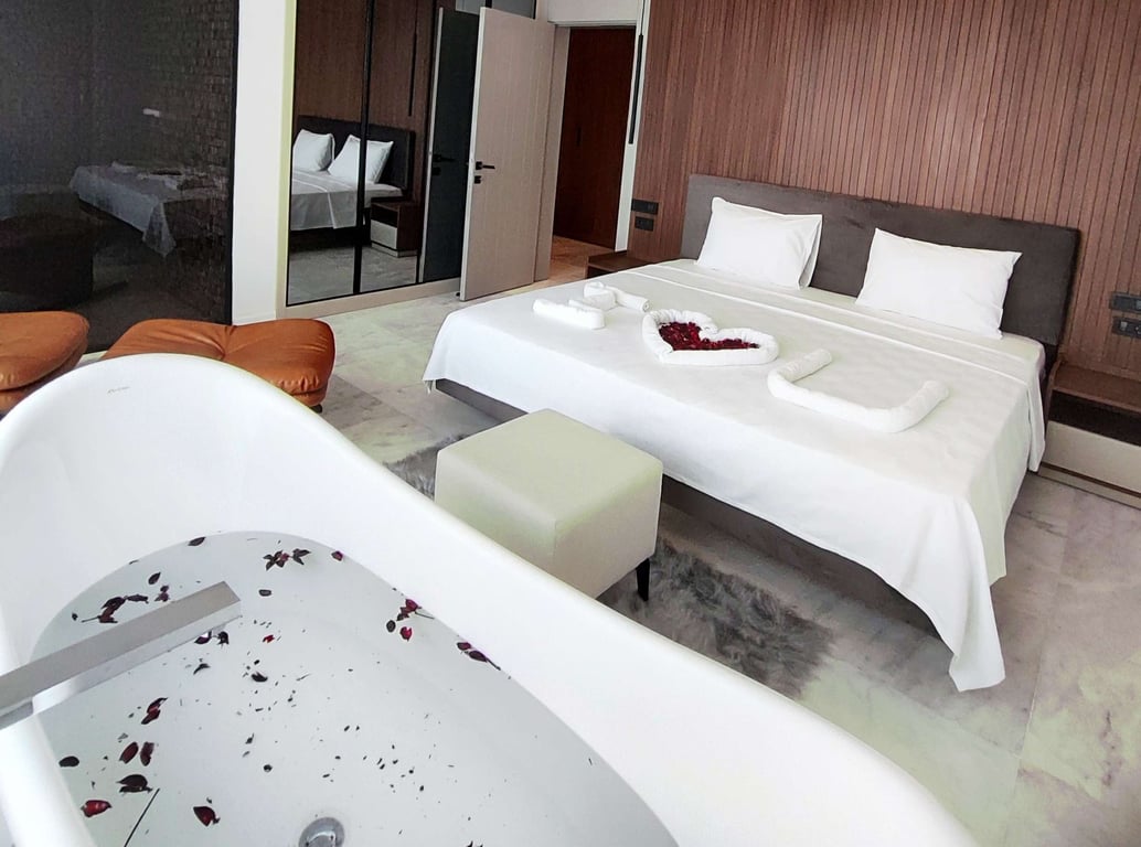 1-Çift kişilik yatak, banyo/WC ve jakuzi bulunmaktadır.