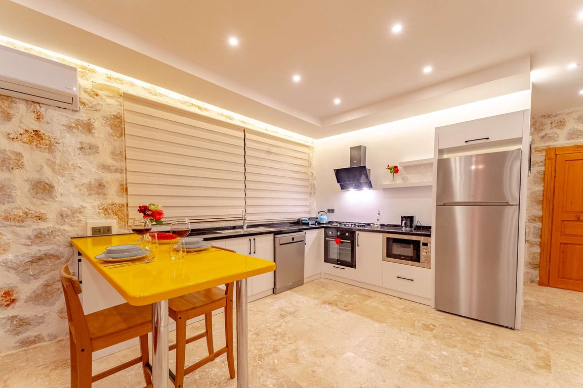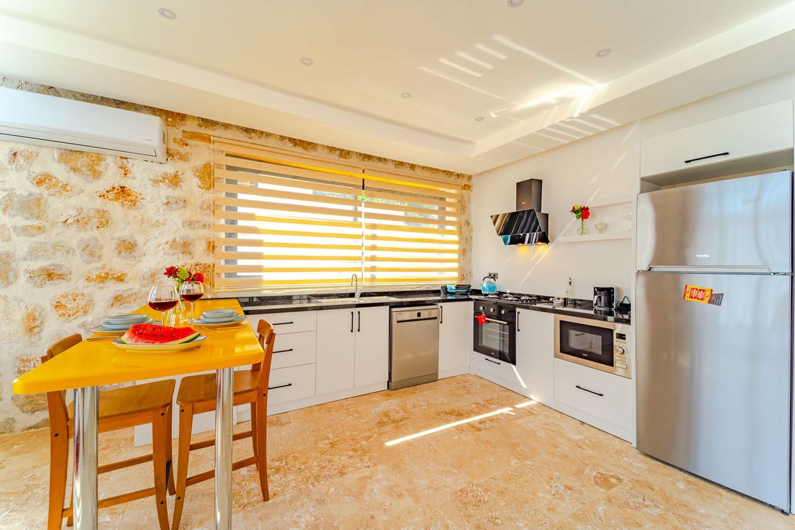 Villa Vega, Kalkan Bezirgan bölgesinde konumlanmakta olan, yeşilliklerle kaplı doğa manzarasına hakim kiralık villalarımız arasında yer almaktadır. Lüks ve modern bir şekilde dizayn edilen villamızda 1 adet yatak odası bulunmakta olup, 2 kişiye konaklama imkanı sağlamaktadır. Yatak odasının içerisinde jakuzi yer almakta olup, tüm yılın vermiş olduğu yorgunluğu giderebilirsiniz. Havuz ve havuz terası korunaklı hale getirilen yazlık villamızı muhafazakar aileler gönül rahatlığı ile tercih edebilirler. Hayallerinizin de ötesinde keyif dolu bir yazlık villada tatil için Villa Vega'yı tercih edebilirsiniz.