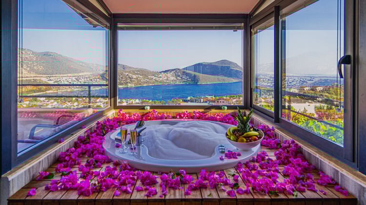 Villa Vita, Kalkan Kalamar bölgesinde konumlanmakta olan, muhteşem deniz ve yeşilliklerle kaplı doğa manzarasına hakim kiralık villalarımız arasında yer almaktadır. Lüks ve modern bir şekilde dizayn edilen villamızda 4 adet yatak odası bulunmakta olup, 6 kişiye konaklama imkanı sağlamaktadır. Yatak odalarından bir tanesinin içerisinde, tüm yılın vermiş olduğu yorgunluğu giderebileceğiniz jakuzi yer almaktadır. Hayallerinizin de ötesinde keyif dolu bir yazlık villada tatil için Villa Vita’yı tercih edebilirsiniz.