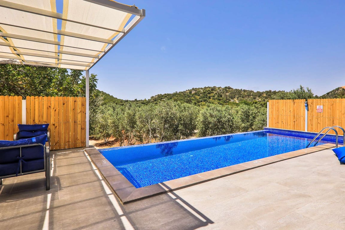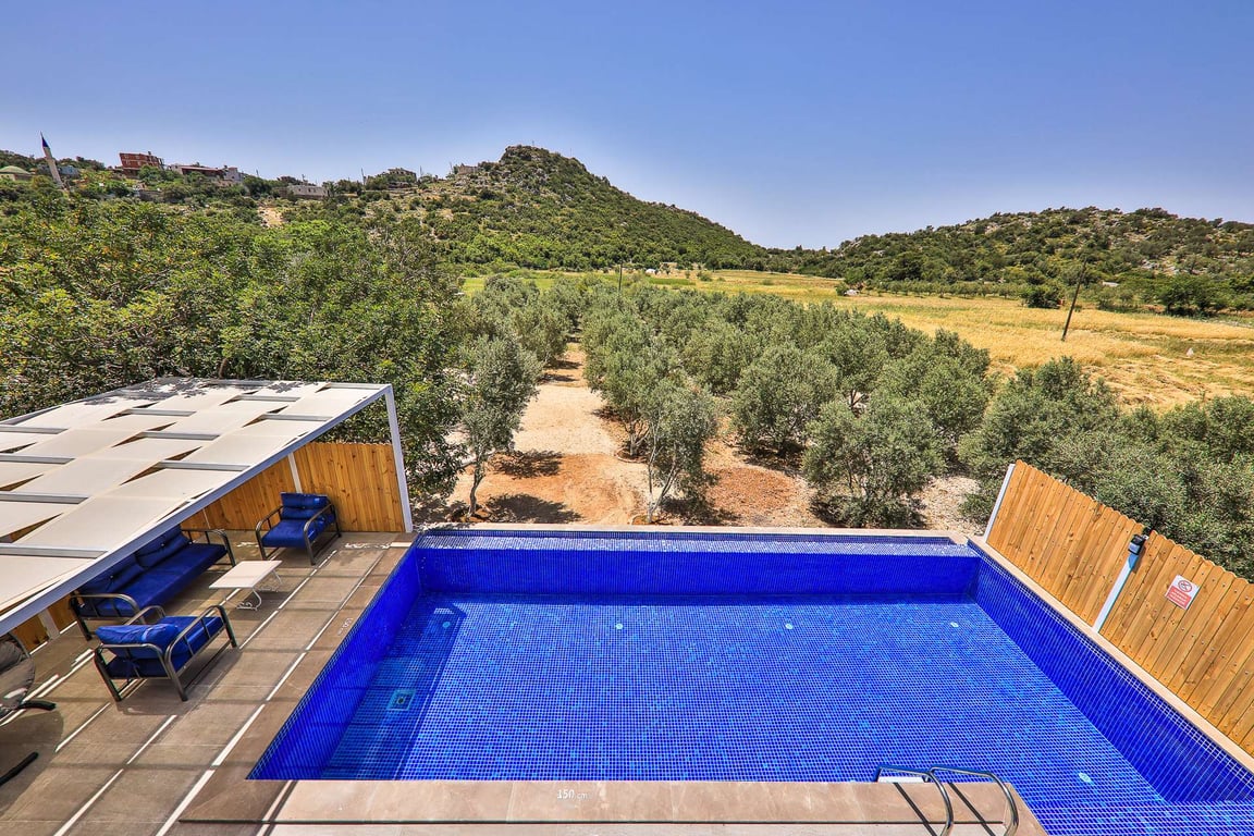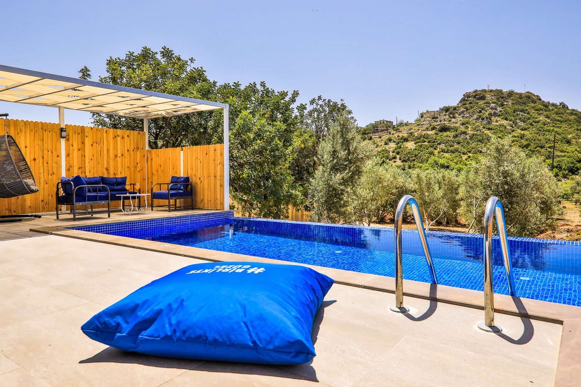 Villa Yağmur Queen, Kalkan Kördere bölgesinde konumlanmakta olan, yeşilliklerle kaplı doğa manzarasına hakim kiralık villalarımız arasında yer almaktadır. Lüks ve modern bir şekilde dizayn edilen villamızda 1 adet yatak odası bulunmakta olup, 2 kişiye konaklama imkanı sağlamaktadır. Yatak odasının içerisinde tüm yılın vermiş olduğu yorgunluğu giderebileceğiniz jakuzi yer almaktadır. Havuz ve havuz terası korunaklı hale getirilen yazlık villamızı muhafazakar aileler gönül rahatlığı ile tercih edebilirler. Hayallerinizin de ötesinde keyif dolu bir yazlık villada tatil için Villa Yağmur Queen'i tercih edebilirsiniz.