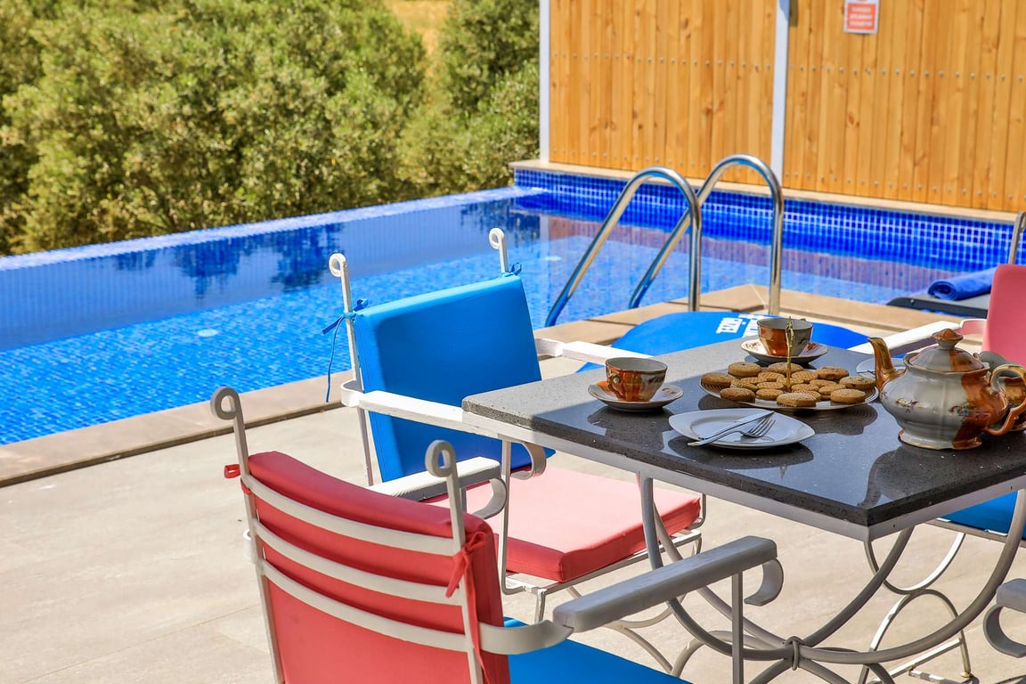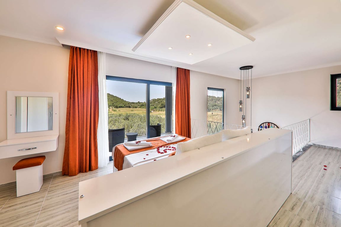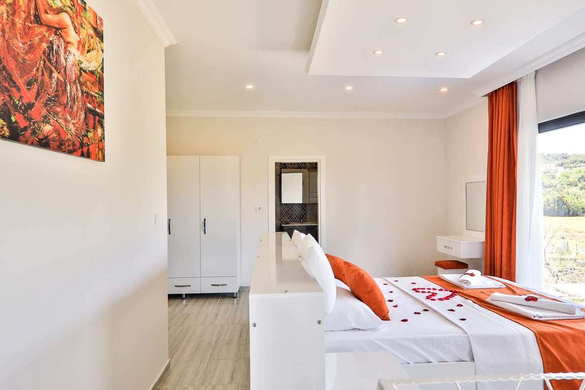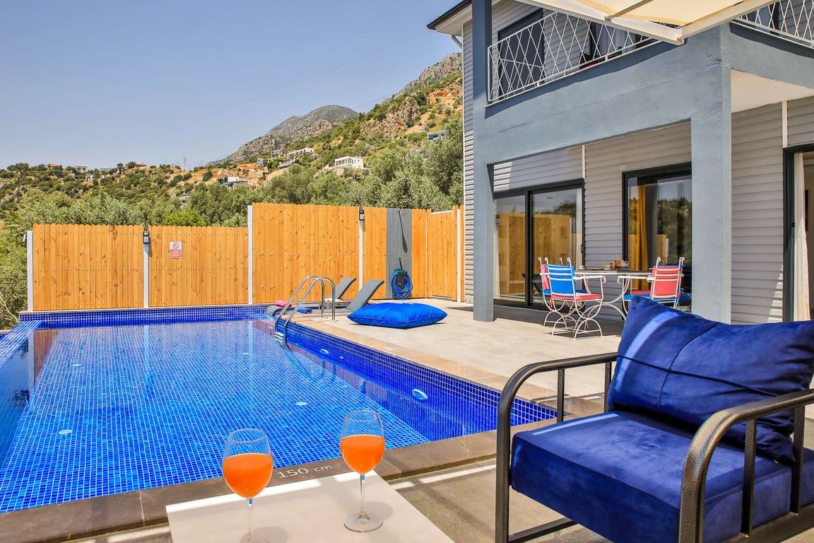 Villa Yağmur Queen, Kalkan Kördere bölgesinde konumlanmakta olan, yeşilliklerle kaplı doğa manzarasına hakim kiralık villalarımız arasında yer almaktadır. Lüks ve modern bir şekilde dizayn edilen villamızda 1 adet yatak odası bulunmakta olup, 2 kişiye konaklama imkanı sağlamaktadır. Yatak odasının içerisinde tüm yılın vermiş olduğu yorgunluğu giderebileceğiniz jakuzi yer almaktadır. Havuz ve havuz terası korunaklı hale getirilen yazlık villamızı muhafazakar aileler gönül rahatlığı ile tercih edebilirler. Hayallerinizin de ötesinde keyif dolu bir yazlık villada tatil için Villa Yağmur Queen'i tercih edebilirsiniz.
