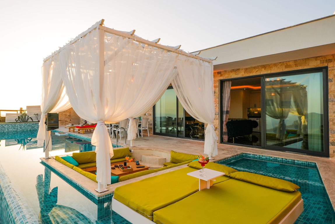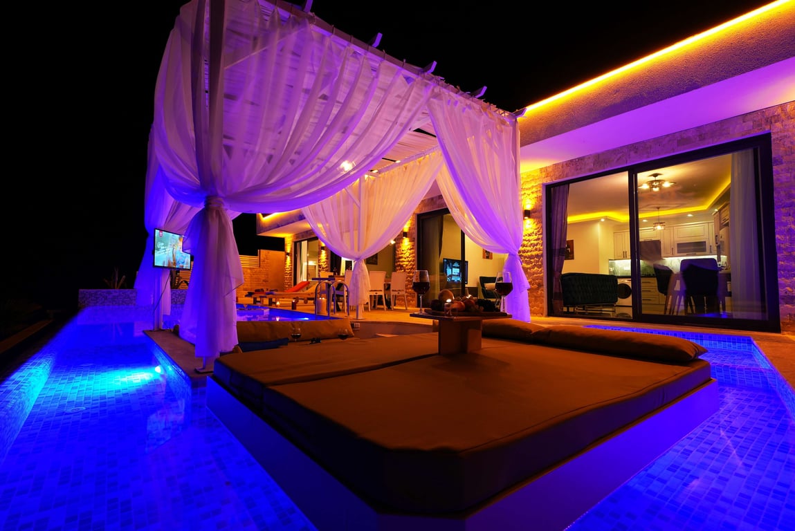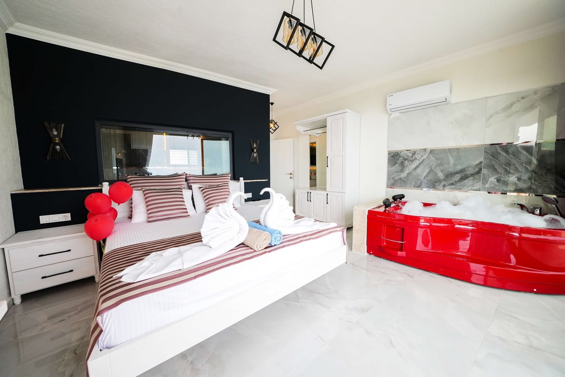 Ebeveyn yatak odasında, yılın yorgunluğunu atabileceğiniz özel bir jakuzi yer almaktadır. Havuz ve havuz terası korunaklı hale getirilmiş olup, muhafazakâr aileler tarafından gönül rahatlığıyla tercih edilebilir. Hayallerinizin ötesinde keyif dolu bir tatil için Villa Berlin’i tercih edebilirsiniz.