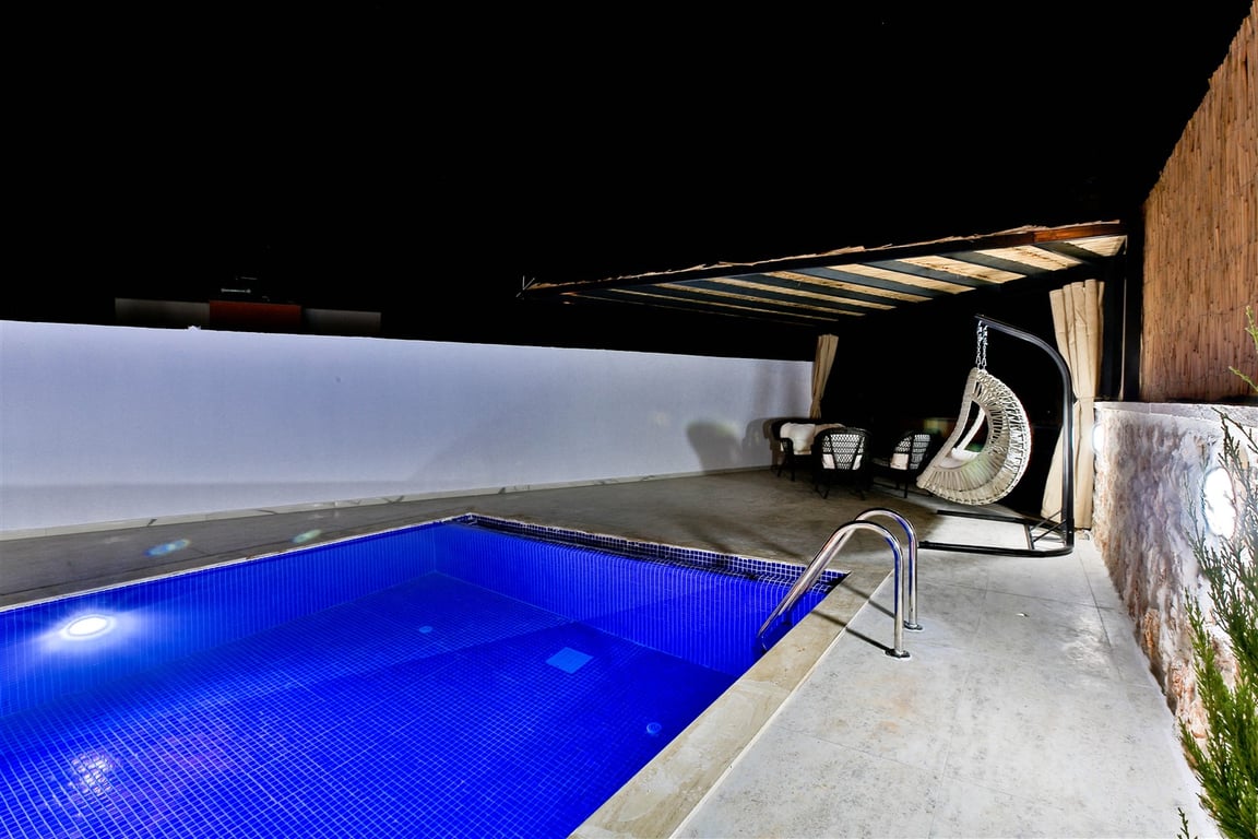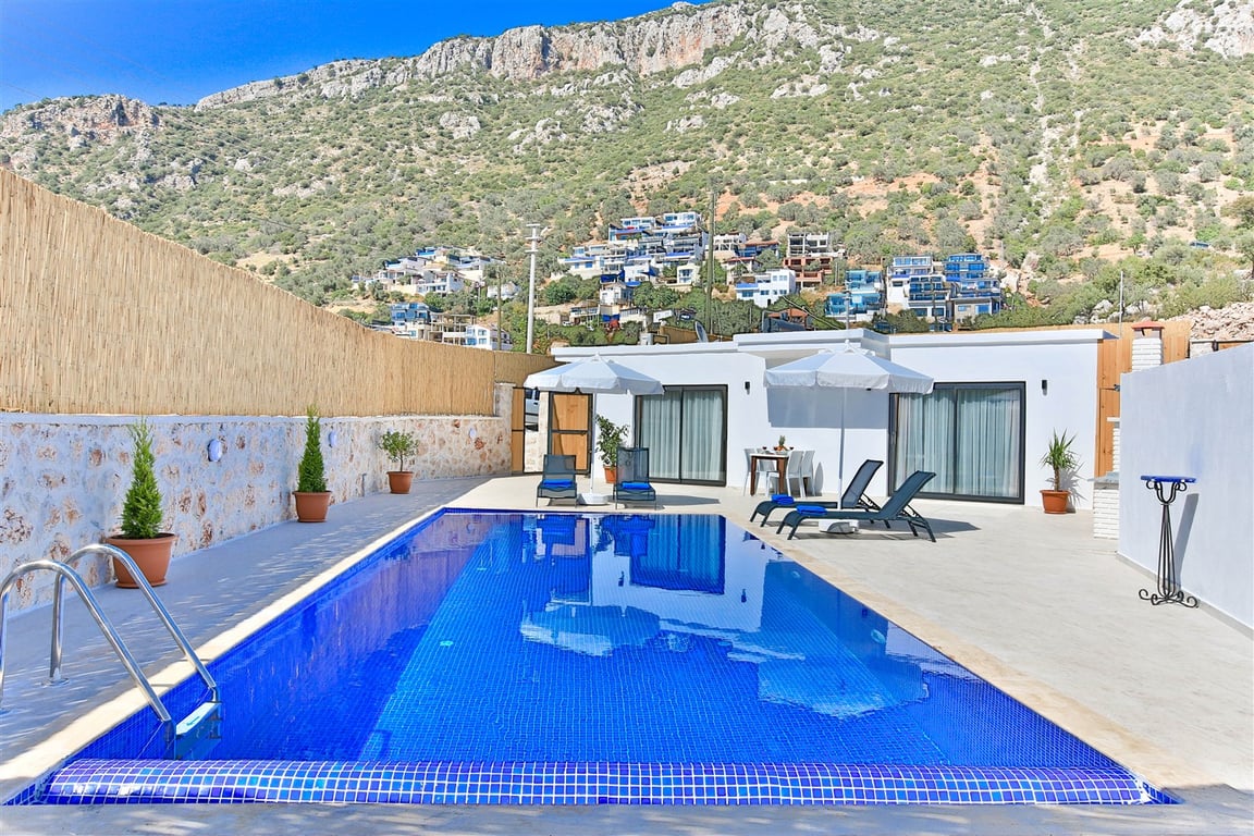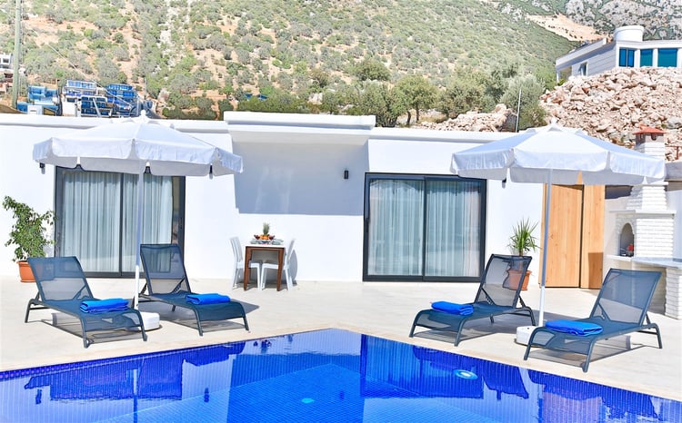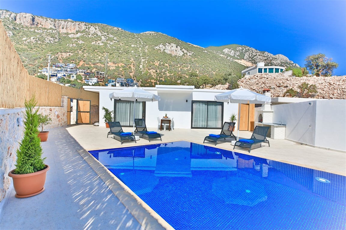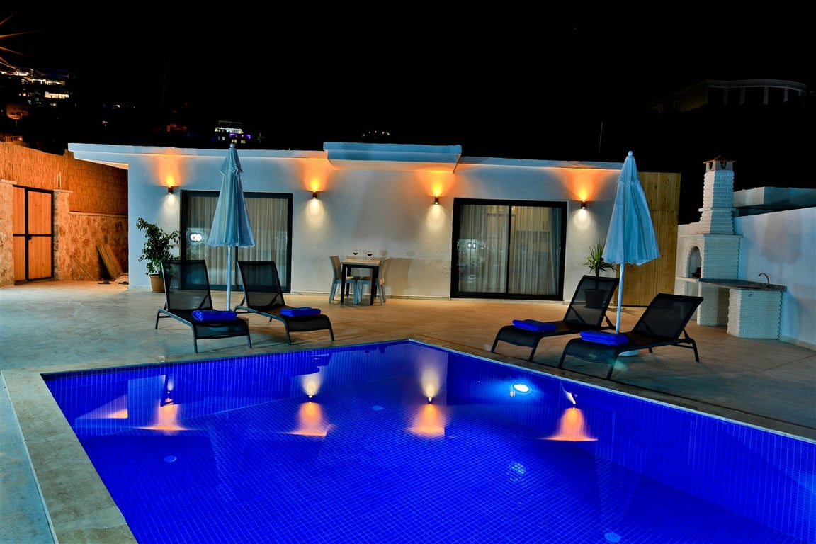 Villa Cengizhan, Kalkan Kördere bölgesinde konumlanmakta olan yeşilliklerle kaplı doğa manzarasına hakim kiralık villalarımız arasında yer almaktadır. Konforlu ve modern bir şekilde dizayn edilen villamızda 2 adet yatak odası bulunmakta olup, 4 kişiye konaklama imkanı sağlamaktadır. Yatak odalarından bir tanesinin içerisinde tüm yılın vermiş olduğu yorgunluğu giderebileceğiniz jakuzi yer almaktadır. Havuz ve havuz terası korunaklı hale getirilen yazlık villamızı muhafazakar aileler gönül rahatlığı ile tercih edebilirler. Aynı zamanda çekirdek aileler ve balayı çiftleri için villamız uygundur. Hayallerinizin de ötesinde keyif dolu bir yazlık villada tatil için Villa Cengizhan’ ı tercih edebilirsiniz.