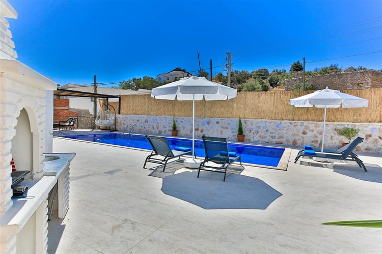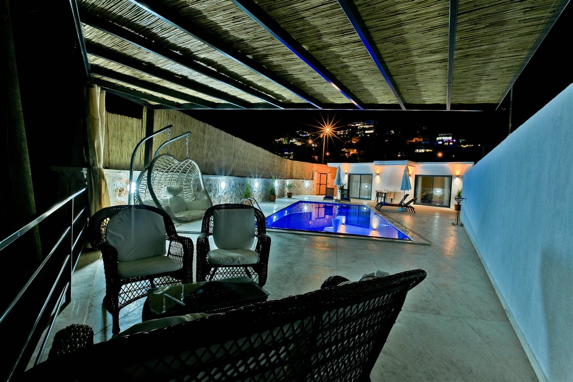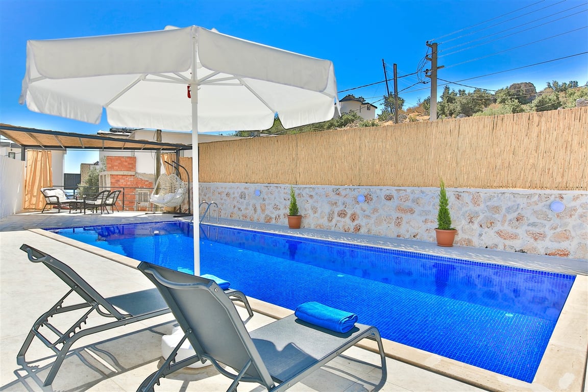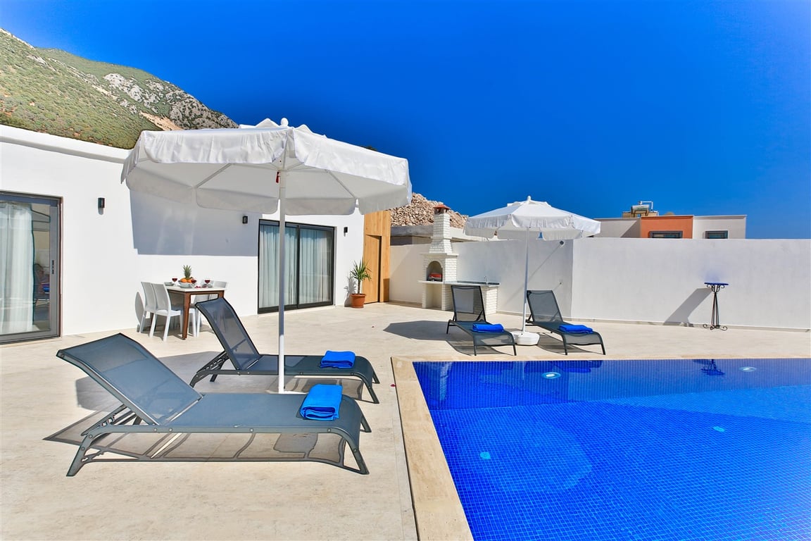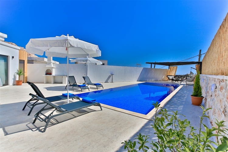Villa Cengizhan, Kalkan Kördere bölgesinde konumlanmakta olan yeşilliklerle kaplı doğa manzarasına hakim kiralık villalarımız arasında yer almaktadır. Konforlu ve modern bir şekilde dizayn edilen villamızda 2 adet yatak odası bulunmakta olup, 4 kişiye konaklama imkanı sağlamaktadır. Yatak odalarından bir tanesinin içerisinde tüm yılın vermiş olduğu yorgunluğu giderebileceğiniz jakuzi yer almaktadır. Havuz ve havuz terası korunaklı hale getirilen yazlık villamızı muhafazakar aileler gönül rahatlığı ile tercih edebilirler. Aynı zamanda çekirdek aileler ve balayı çiftleri için villamız uygundur. Hayallerinizin de ötesinde keyif dolu bir yazlık villada tatil için Villa Cengizhan’ ı tercih edebilirsiniz.