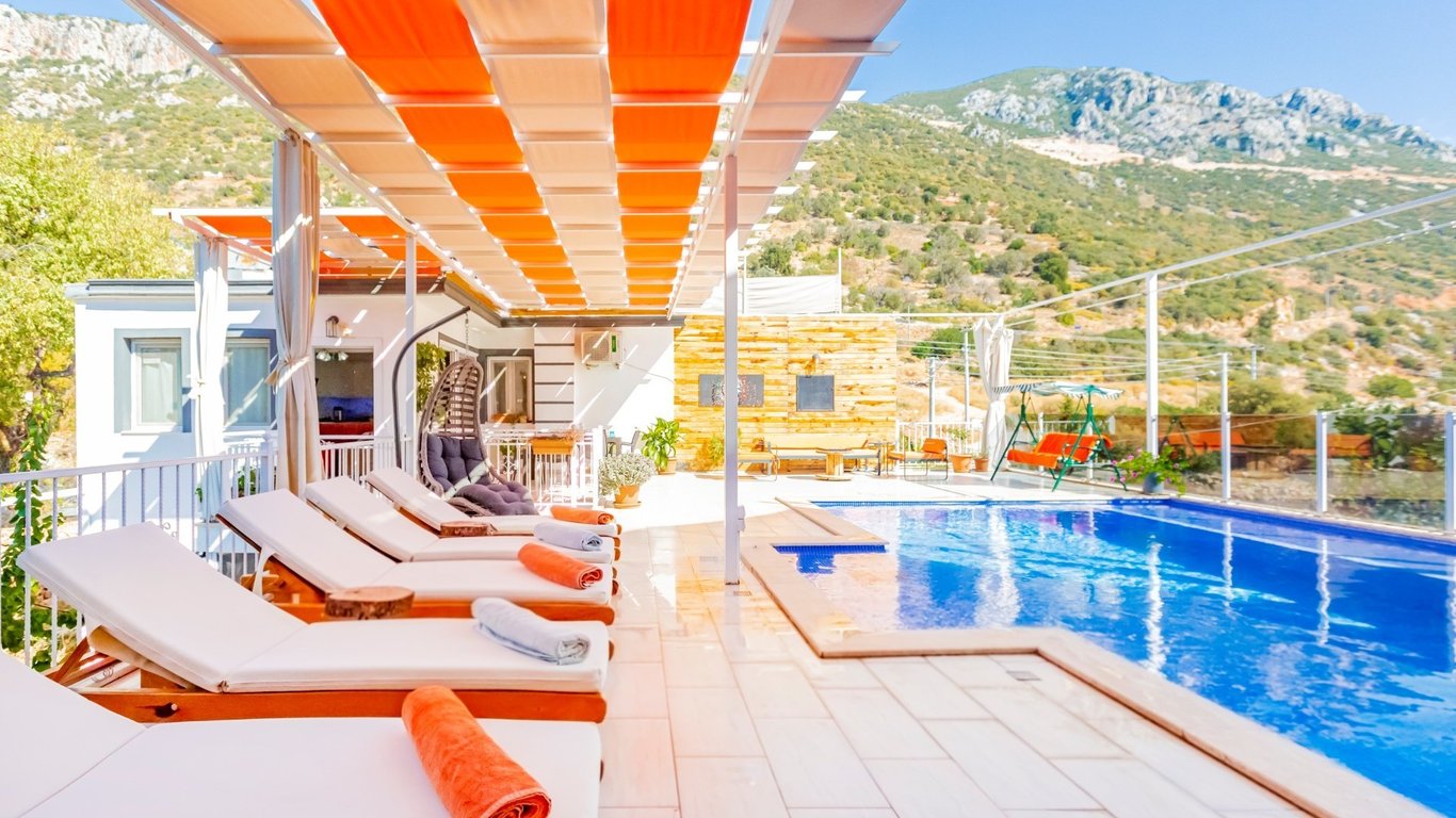 Havuzlu Kiralık Villa Doğa İle İç İçe Muhafazakar Kiralık Villa Kaş Kiralık Villa Kalabalık Aileler İçin Uygun Villa Antalya Kiralık Villa Jakuzili Muhafazakar Villa Dağ Manzaralı Kalkan Kiralık Villa