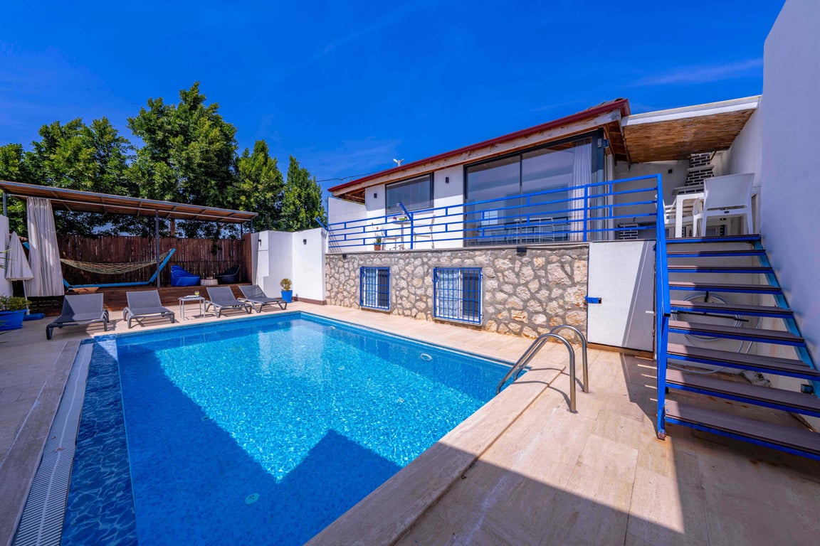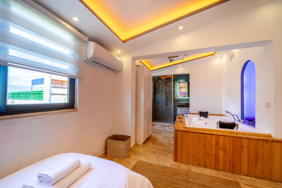 Villa Kutay, Kalkan Patara bölgesinde konumlanmakta olan muhteşem doğa manzarasına hakim kiralık villalarımız arasında yer almaktadır. Konforlu bir şekilde dizayn edilen villamızda 2 adet yatak odası bulunmakta olup, 4 kişiye konaklama imkanı sağlamaktadır. Yatak odalarından bir tanesinin içerisinde tüm yılın vermiş olduğu yorgunluğu giderebileceğiniz jakuzi yer almaktadır. Aynı zamanda villamızda hamam, sauna ve kış aylarında tatil planı yapmak isteyen misafirlerimiz için kapalı ısıtma havuzu yer almaktadır. Havuz ve havuz terası korunaklı hale getirilen yazlık villamızı muhafazakar aileler gönül rahatlığı ile tercih edebilirler. Hayallerinizin de ötesinde keyif dolu bir yazlık villada tatil için Villa Kutay’ ı tercih edebilirsiniz.
