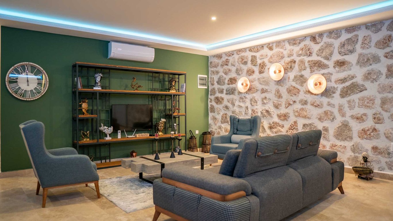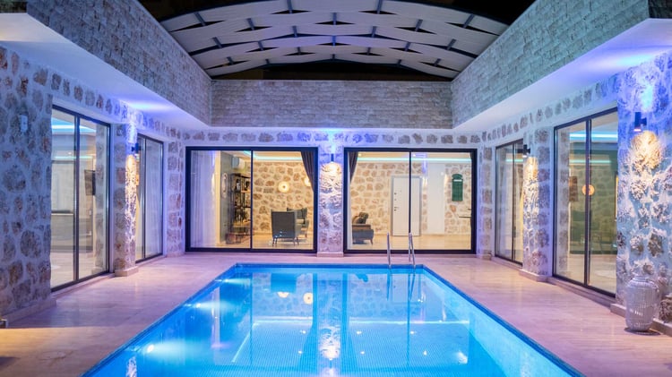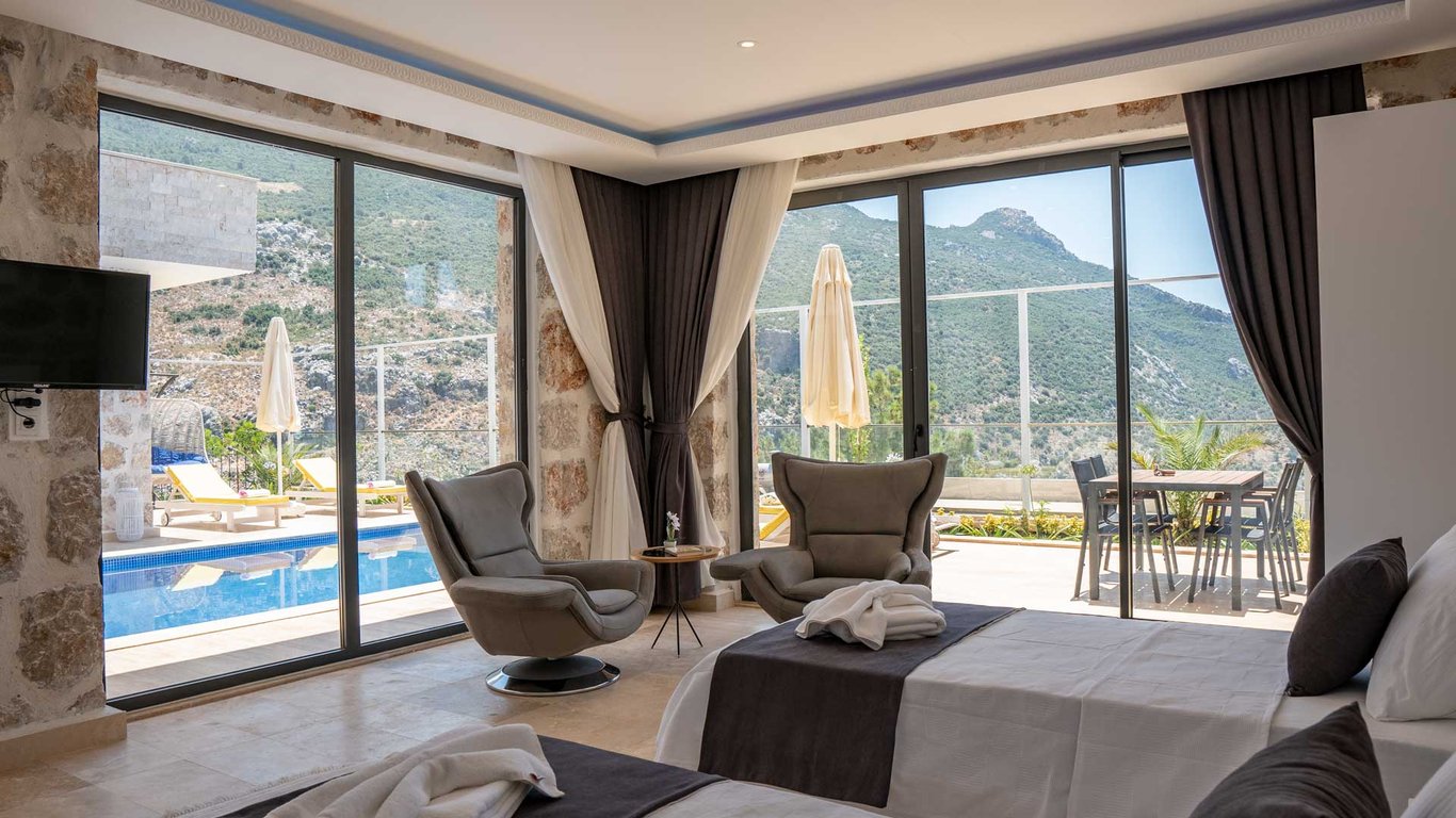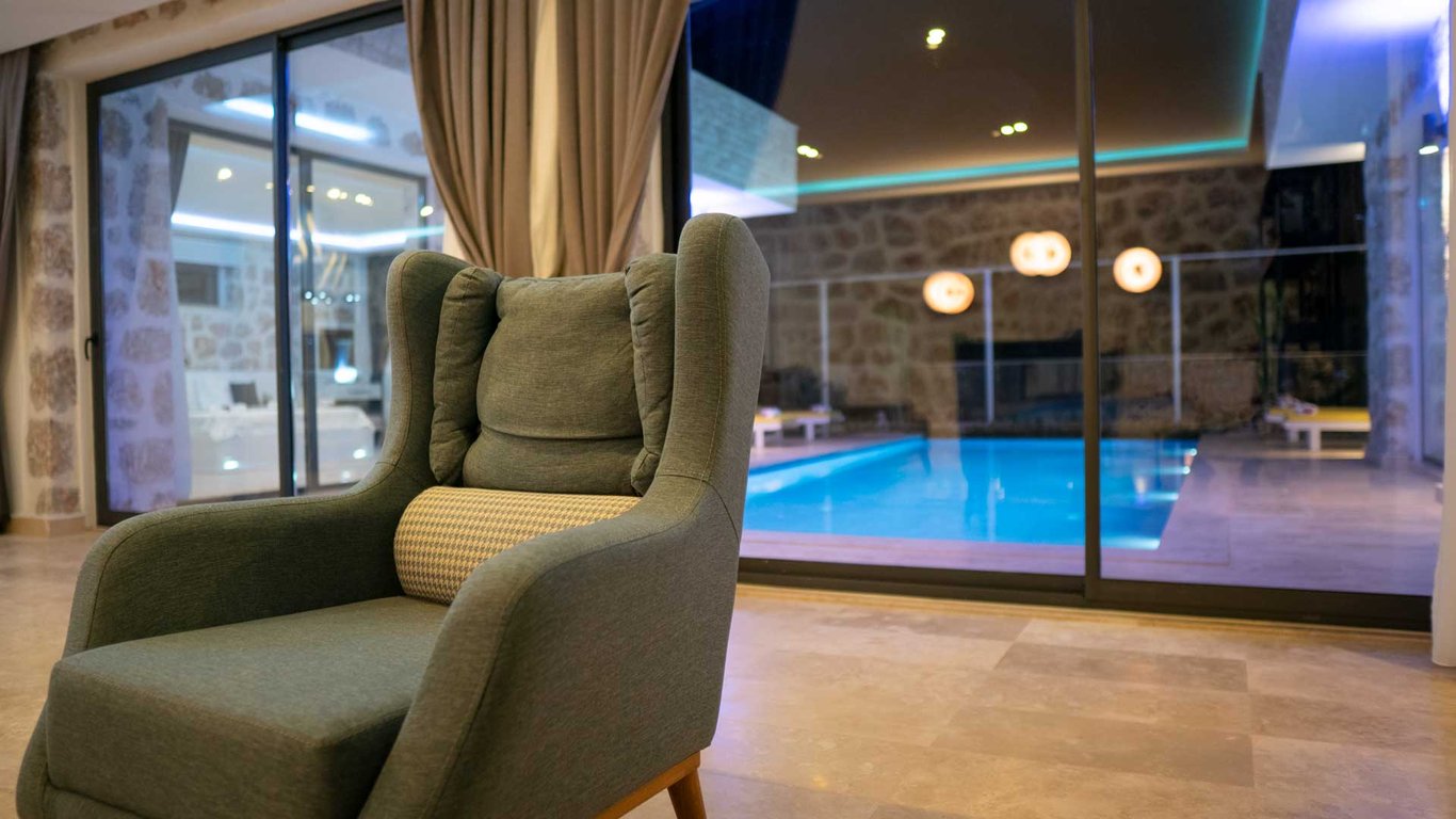 Villa Narin 7, Kalkan İslamlar bölgesinde konumlanmakta olan muhteşem yeşilliklerle kaplı doğa manzarasına hakim kiralık villalarımız arasında yer almaktadır. Lüks ve modern bir şekilde dizayn edilen villamızda 2 adet yatak odası bulunmakta olup, 4 kişiye konaklama imkanı sağlamaktadır. Yatak odalarından bir tanesinin içerisinde tüm yılın vermiş olduğu yorgunluğu giderebileceğiniz jakuzi yer almaktadır. Balayı çiftleri ve çekirdek aileler için uygundur. Aynı zamanda kış aylarında tatil planı yapmak isteyen misafirlerimiz için kapalı ısıtma havuzu yer almaktadır. Havuz ve havuz terası korunaklı hale getirilen yazlık villamızı muhafazakar aileler gönül rahatlığı ile tercih edebilirler. Hayallerinizin de ötesinde keyif dolu bir yazlık villada tatil için Villa Narin 7’ yi tercih edebilirsiniz.