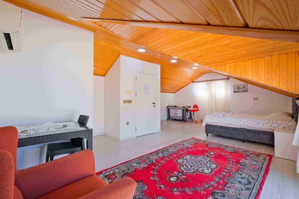 - 1 - Çift kişilik yatak, banyo/wc, jakuzi ve bebek yatağı bulunmaktadır.