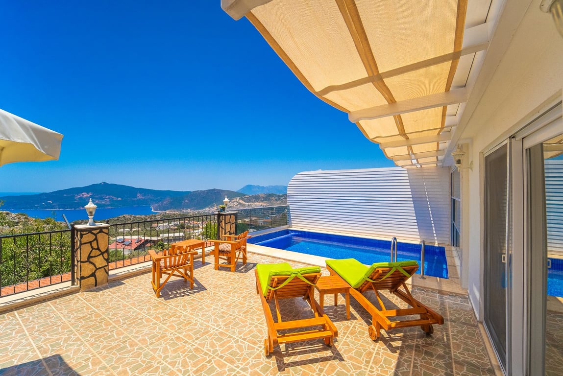 Villa Sinem, Kalkan Kördere bölgesinde konumlanmakta olan muhteşem deniz ve yeşilliklerle kaplı doğa manzarasına hakim kiralık villalarımız arasında yer almaktadır. Konforlu bir şekilde dizayn edilen villamızda 2 adet yatak odası bulunmakta olup, 4 kişiye konaklama imkanı sağlamaktadır. Yatak odalarından bir tanesinin içerisinde kış aylarında tatil planı yapmak isteyen misafirlerimiz için kapalı ısıtma havuzu yer almaktadır. Havuz ve havuz terası korunaklı hale getirilen yazlık villamızı muhafazakar aileler gönül rahatlığı ile tercih edebilirler. Hayallerinizin de ötesinde keyif dolu bir yazlık villada tatil için Villa Sinem’ i tercih edebilirsiniz.