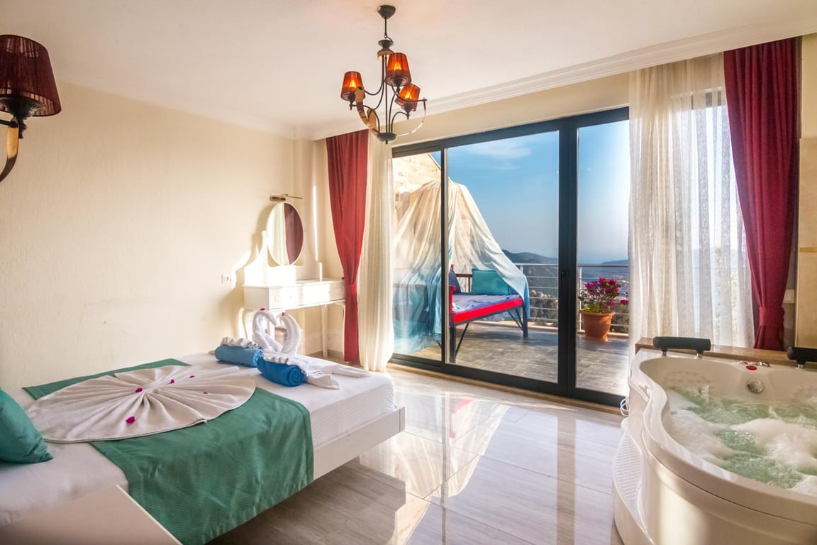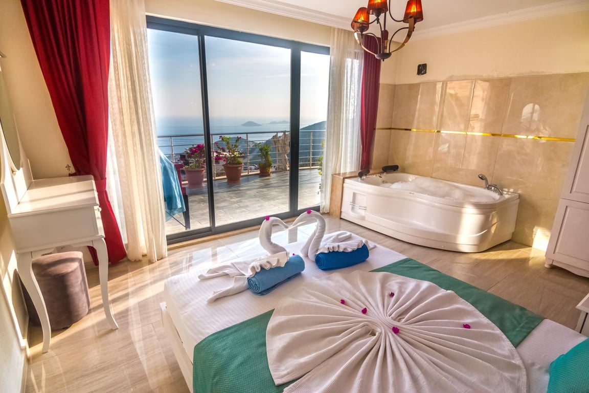 Villa İstanbul, Kalkan Akbel bölgesinde konumlanmakta olan muhteşem deniz ve yeşilliklerle kaplı doğa manzarasına hakim kiralık villalarımız arasında yer almaktadır. Lüks ve modern bir şekilde dizayn edilen villamızda 2 adet yatak odası bulunmakta olup, 4 kişiye konaklama imkanı sağlamaktadır. Yatak odalarından bir tanesinin içerisinde tüm yılın vermiş olduğu yorgunluğu giderebileceğiniz jakuzi yer almaktadır. Havuz ve havuz terası korunaklı hale getirilen yazlık villamızı muhafazakar aileler gönül rahatlığı ile tercih edebilirler. Hayallerinizin de ötesinde keyif dolu bir yazlık villada tatil için Villa İstanbul’ u tercih edebilirsiniz.