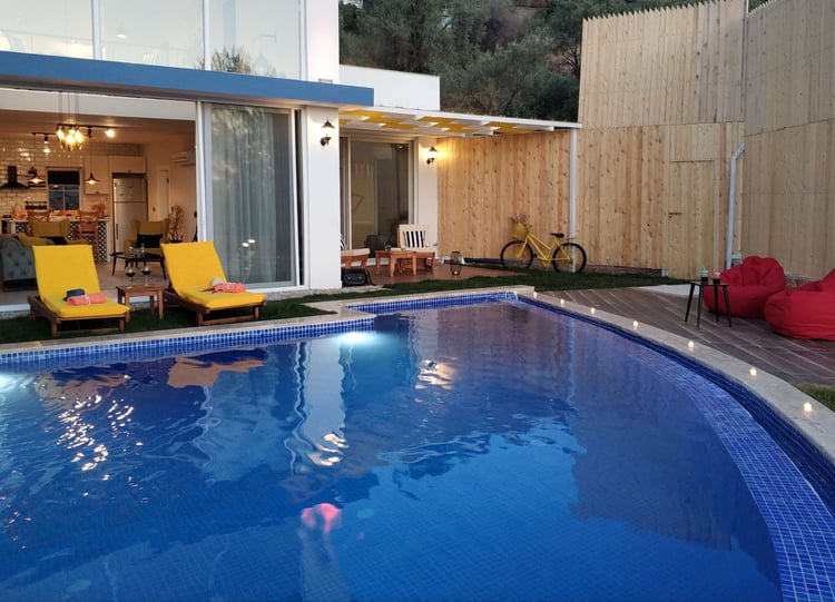 Villa Tita, Kalkan Akbel bölgesinde konumlanmakta olan muhteşem yeşilliklerle kaplı doğa manzarasına hakim kiralık villalarımız arasında yer almaktadır. Lüks ve modern bir şekilde dizayn edilen villamızda 2 adet yatak odası bulunmakta olup, 4 kişiye konaklama imkanı sağlamaktadır. Yatak odalarından bir tanesinin içerisinde tüm yılın vermiş olduğu yorgunluğu giderebileceğiniz jakuzi yer almaktadır. Havuz ve havuz terası korunaklı hale getirilen yazlık villamızı muhafazakar aileler gönül rahatlığı ile tercih edebilirler. Hayallerinizin de ötesinde keyif dolu bir yazlık villada tatil için Villa Tita’ yı tercih edebilirsiniz.