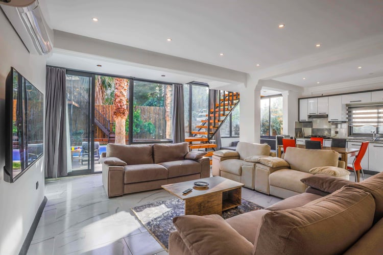 Villa Zülfiye, Kalkan Ulugöl bölgesinde konumlanmakta olan yeşilliklerle kaplı doğa manzarasına hakim kiralık villalarımız arasında yer almaktadır. Konforlu bir şekilde dizayn edilen villamızda 4 adet yatak odası bulunmakta olup, 8 kişiye konaklama imkanı sağlamaktadır. Yatak odalarından iki tanesinin içerisinde tüm yılın vermiş olduğu yorgunluğu giderebileceğiniz jakuzi yer almaktadır. Aynı zamanda villamızda sauna mevcuttur. Villamız geniş aileler ve kalabalık arkadaş grupları için uygundur. Hayallerinizin de ötesinde keyif dolu bir yazlık villada tatil için Villa Zülfiye’ yi tercih edebilirsiniz.