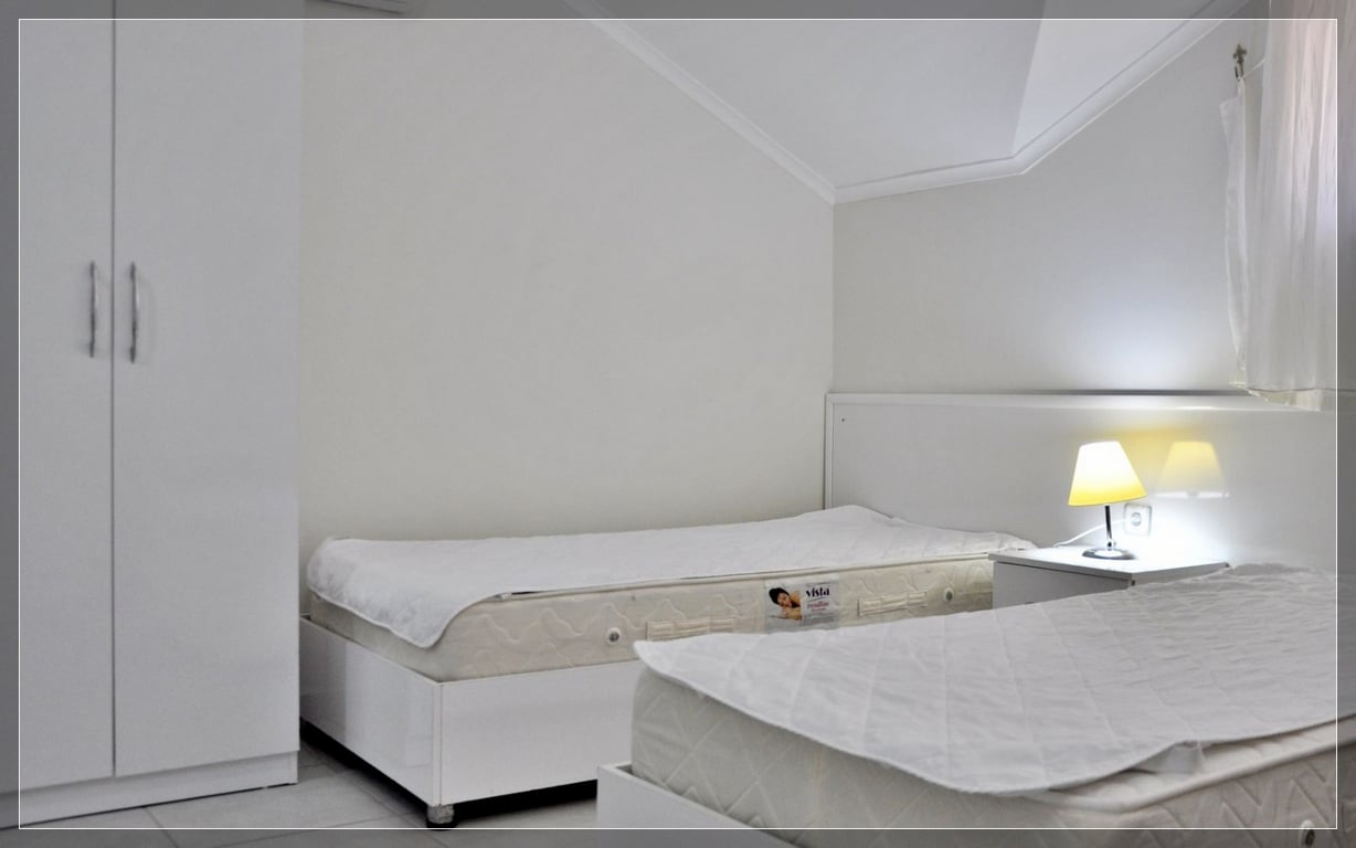 2-İki adet tek kişilik yatak ve ortak kullanım banyo/WC bulunmaktadır.