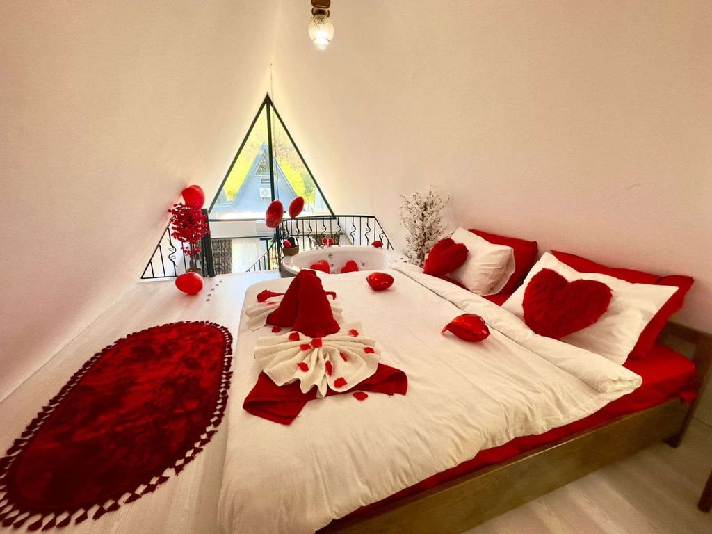 - 2 - Çift kişilik yatak ve banyo/wc bulunmaktadır.