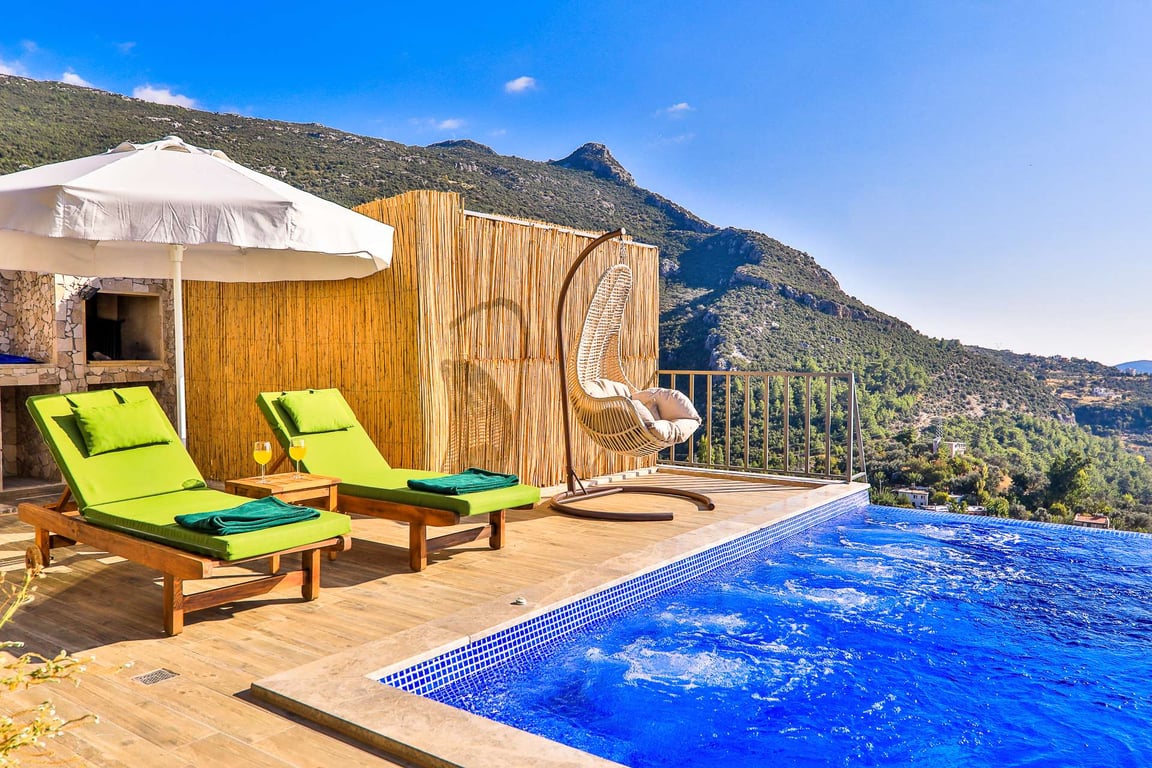 Havuzlu Kiralık Villa Doğa İle İç İçe Isıtmalı Havuzlu Villa Muhafazakar Kiralık Villa Kaş Kiralık Villa Antalya Kiralık Villa Jakuzili Balayı Kiralık Villa Muhafazakar Villa Balayı Villası Dağ Manzaralı Kalkan Kiralık Villa