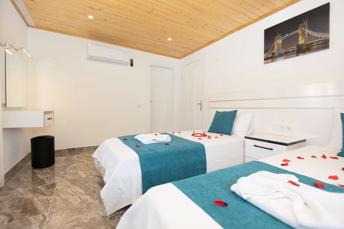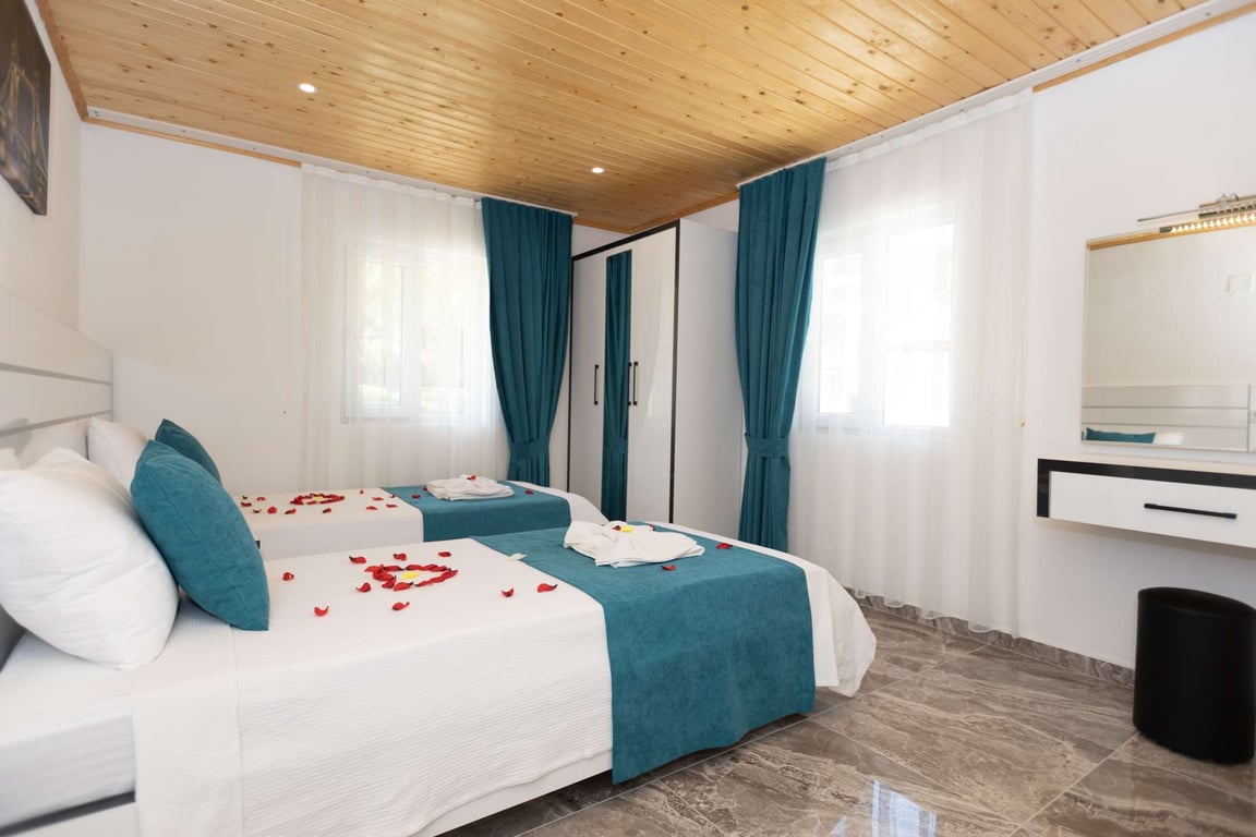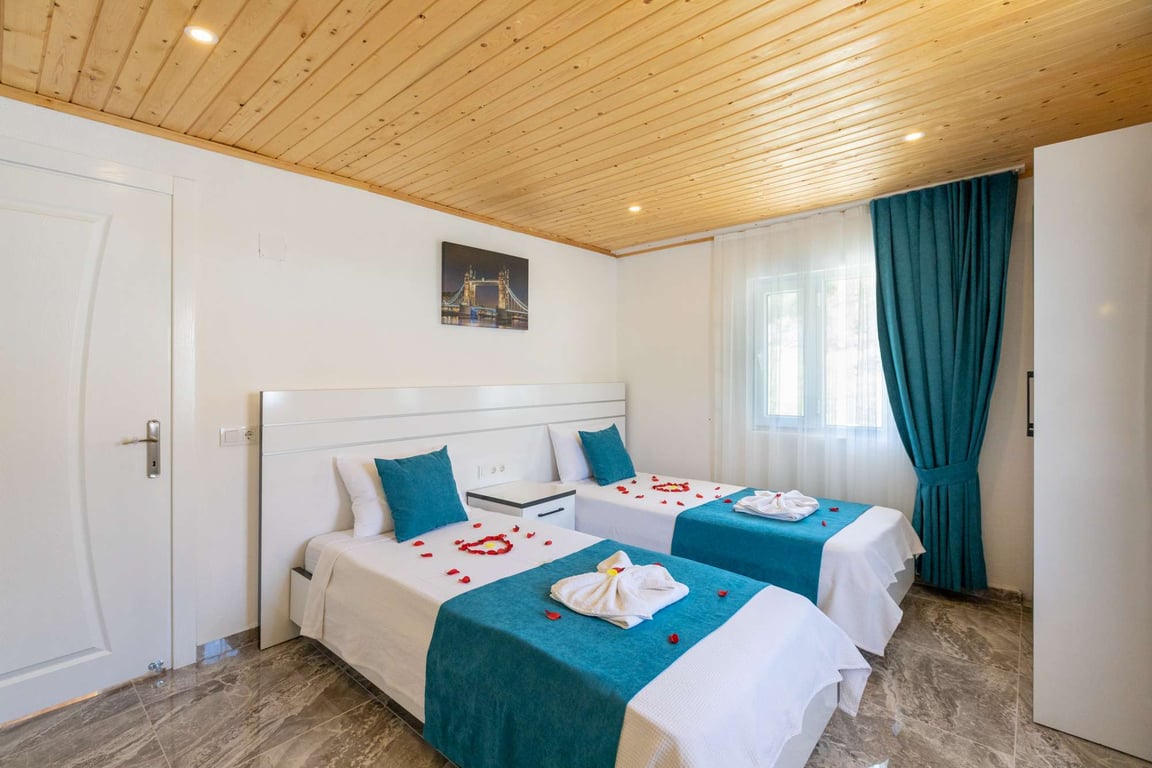 Villa Adalya İkizce, Kalkan İkizce bölgesinde konumlanmakta olan, yeşilliklerle kaplı doğa manzarasına hâkim kiralık villalarımız arasında yer almaktadır. Konforlu ve modern bir şekilde dizayn edilen villamızda 2 adet yatak odası bulunmakta olup, 4 kişiye konaklama imkânı sağlamaktadır. Ayrıca çocuklarınızın rahatça eğlenebileceği çocuk havuzu da bulunmaktadır. Havuz ve havuz terası korunaklı hale getirilen yazlık villamızı muhafazakâr aileler gönül rahatlığı ile tercih edebilirler. Hayallerinizin de ötesinde keyif dolu bir yazlık villada tatil için Villa Adalya İkizce'yi tercih edebilirsiniz.