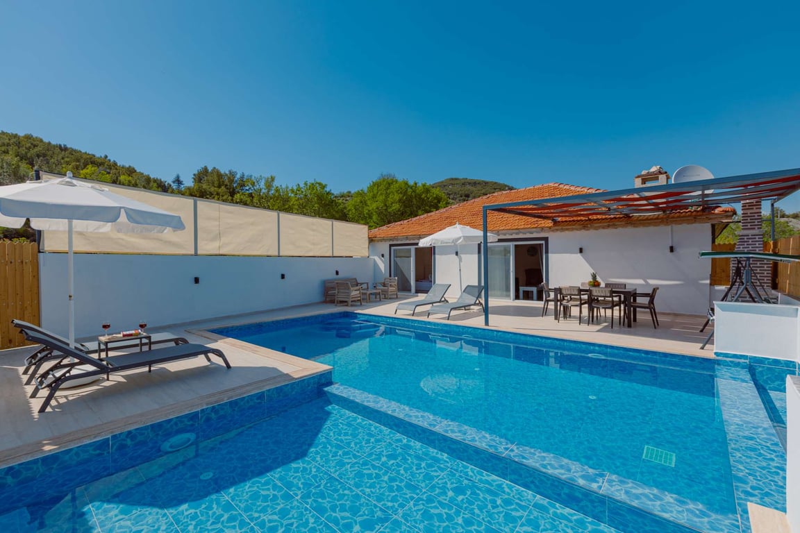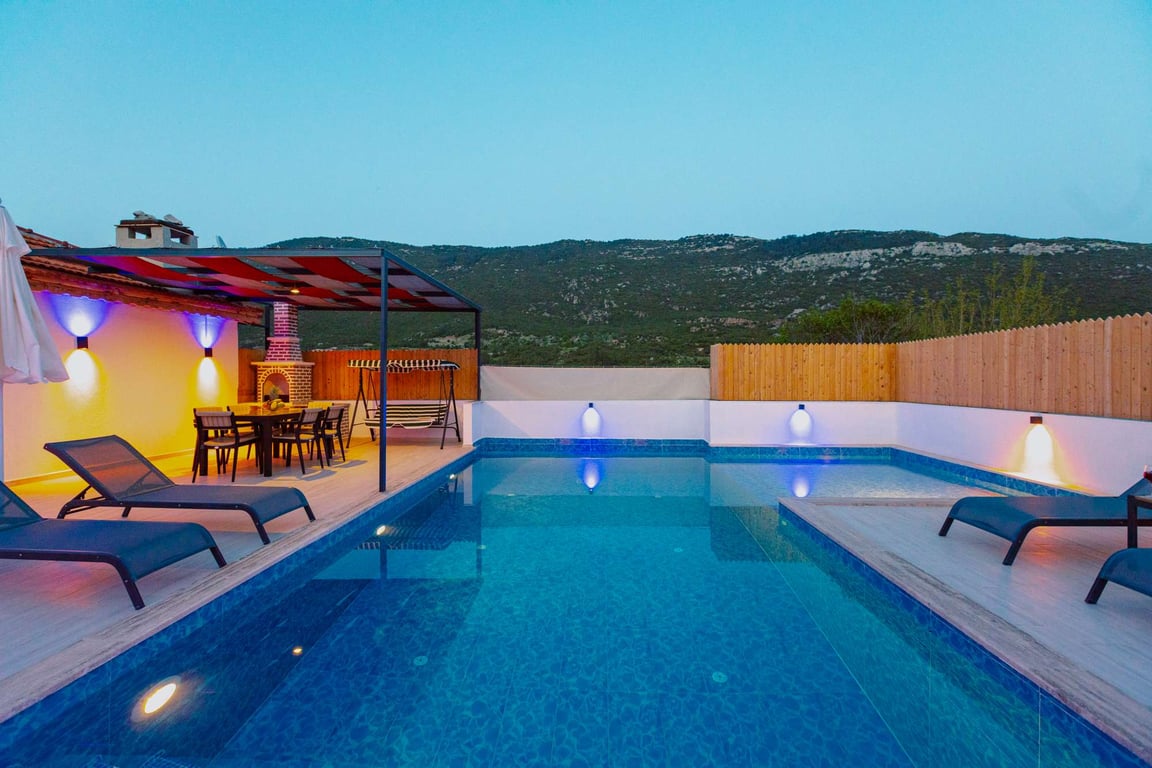 Havuzlu Kiralık Villa Doğa İle İç İçe Kaş Kiralık Villa Antalya Kiralık Villa Balayı Kiralık Villa Muhafazakar Villa Balayı Villası Dağ Manzaralı Sığ ve Çocuk Havuzlu Villa Kalkan Kiralık Villa
